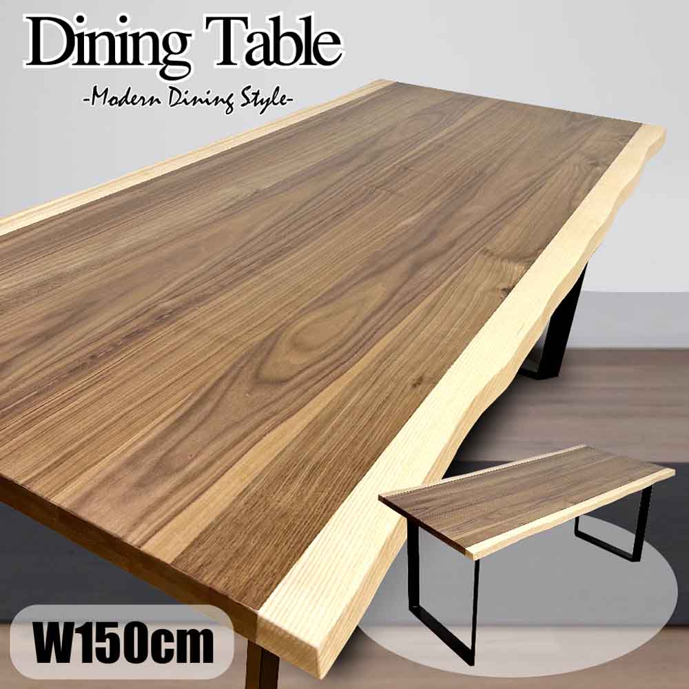 ダイニングテーブル テーブル 一枚板 スチール脚 幅150cm ウォールナット 高級感 天板40mm ブラウン モダン