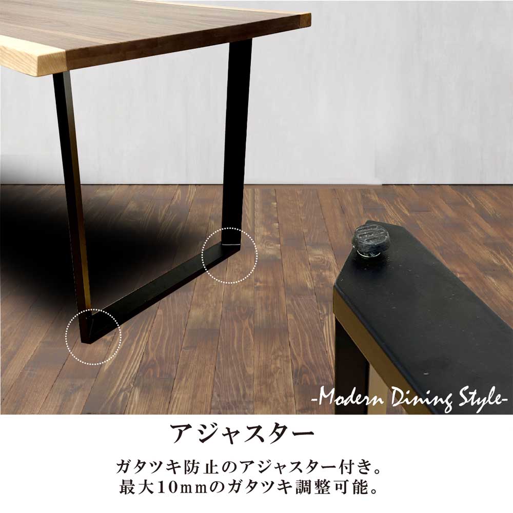 ●天板はウォールナット突板張りでブラウン色とナチュラル色の落ち着いた風合い。●天板厚みは40mmと存在感のあるダイニングテーブル。●脚はガタツキ防止のアジャスター付きで最大10mmまで調整可能。