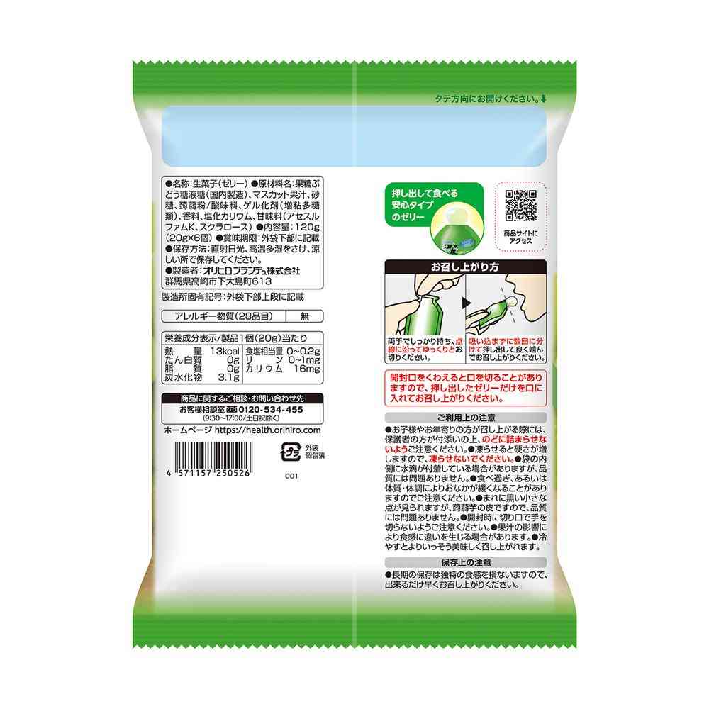 果糖ぶどう糖液糖(国内製造)、マスカット果汁、砂糖、蒟蒻粉/酸味料、ゲル化剤(増粘多糖類)、香料、塩化カリウム、甘味料(アセスルファムK、スクラロース)