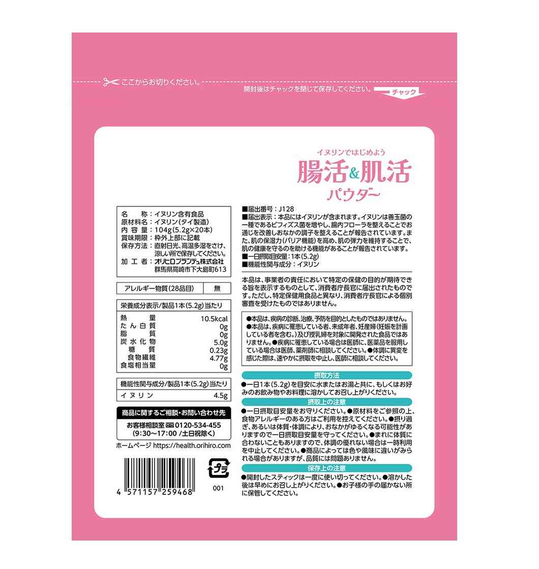 ![◆[機能性表示食品]オリヒロ 腸活&肌活パウダー 5.2Gx20本 [4個セット]](/img/0170/goods/2/4571157259468_3.jpg)