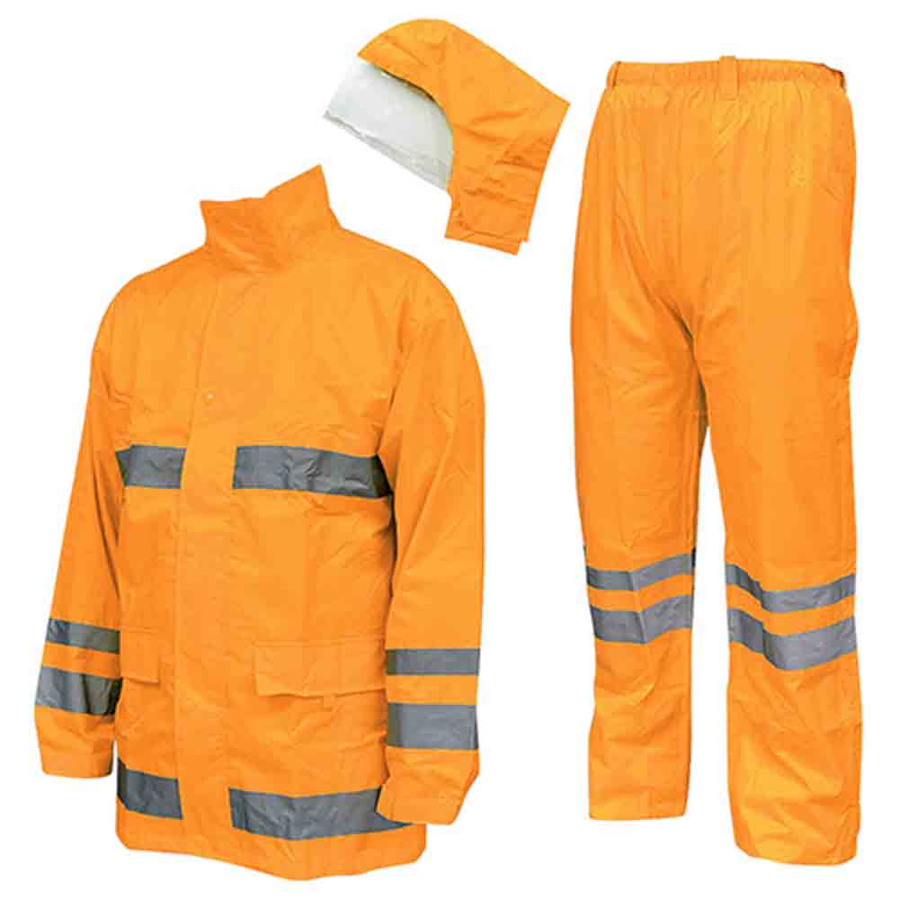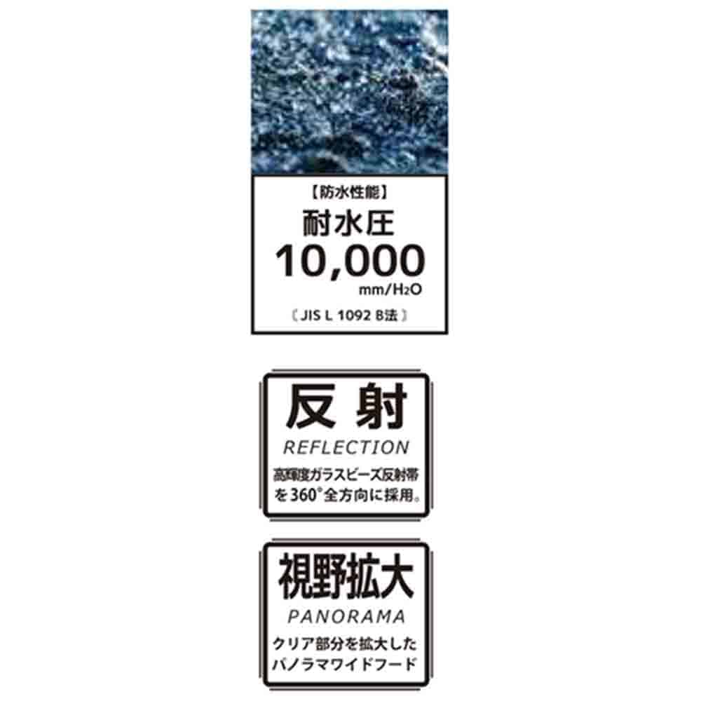 高輝度反射素材と鮮やかなハイビズカラーで夜の視認性を向上したレインスーツです。 レインウェア。 クリア部分を拡大した着脱式のパノラマワイドフードを採用しています。 高輝度ガラスビーズ反射帯を360度全方向に採用しています。 上下ワンセットです。 ●耐水圧:10000mm/H2O。 ●サイズ:M。 ●色:蛍光オレンジ。