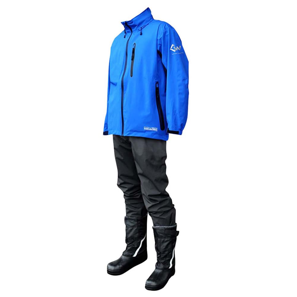 身体の動きを妨げず、作業性を損なわない機動力に優れた高機能レインウェアです。 レインウェア。 ストレッチ性を有する防水・透湿素材を採用しているので作業性に優れています。 防水性能を上げるために上衣の全ファスナーにに止水ファスナーを採用しています。 ビッグファスナーポケットなので大きめのアイテムも収納可能です。 前開き部にファスナーとマジックテープ両方使用しているので、手袋着用時でも脱着がスムーズに行なえます。 裾部のフラップ付きアジャスタは長靴やワークブーツにも対応できます。 ●耐水圧12000mm/H2O。 ●透湿度:5000g/m2/24h.。 ●サイズ:3L。 ●適応身長:170~180(cm)。 ●適応胸囲:102~110(cm)。 ●適応胴囲:94~104(cm)。 ●色:ブルー。