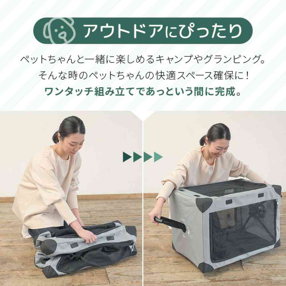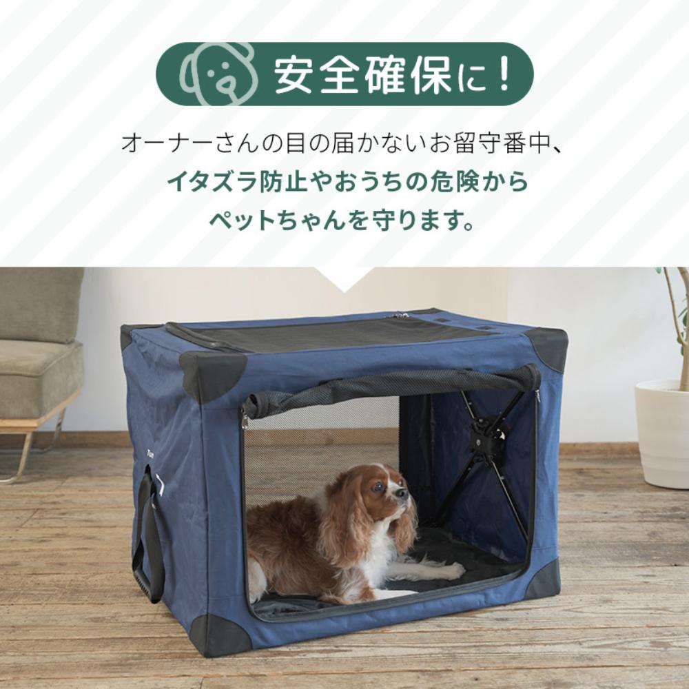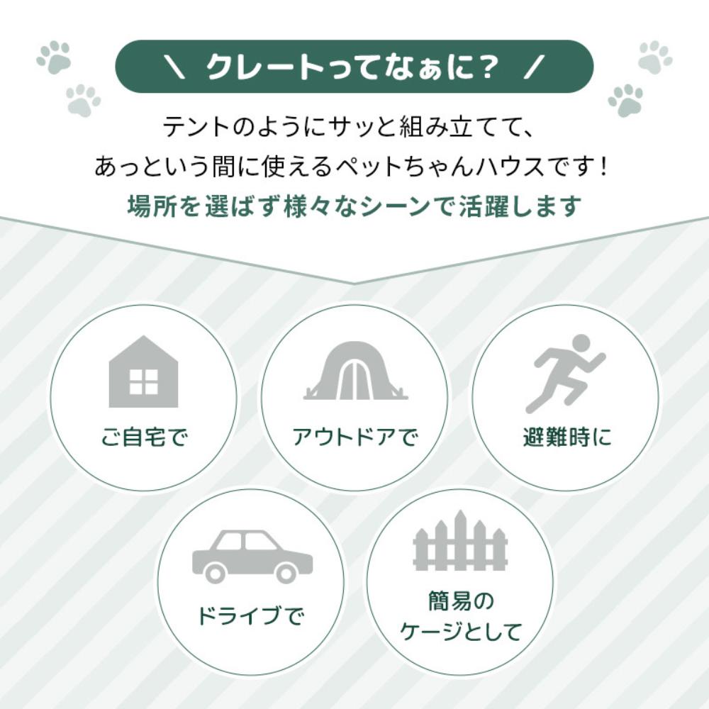 ・テントのようにサッと組み立てて、あっという間に使えるペットハウスです!場所を選ばず様々なシーンで活躍します。 ・オーナー様の目の届かないお留守番中、イタズラ防止やおうちの危険からペットを守ります。 ・旅行先や慣れない場所での宿泊でも、いつもの寝床がそのまま移動する感覚に。ペットもリラックス! ・ペットと一緒に楽しめるキャンプやグランピング、そんな時のペットの快適スペース確保に!ワンタッチ組み立てであっという間に完成!工具不要。 ・脱走防止用ファスナー採用。 ・通気性抜群な大きなメッシュ窓。 ・コンパクトに畳めて持ち運び便利(収納袋付き) ●セット内容:本体、収納袋●耐荷重:~5kg