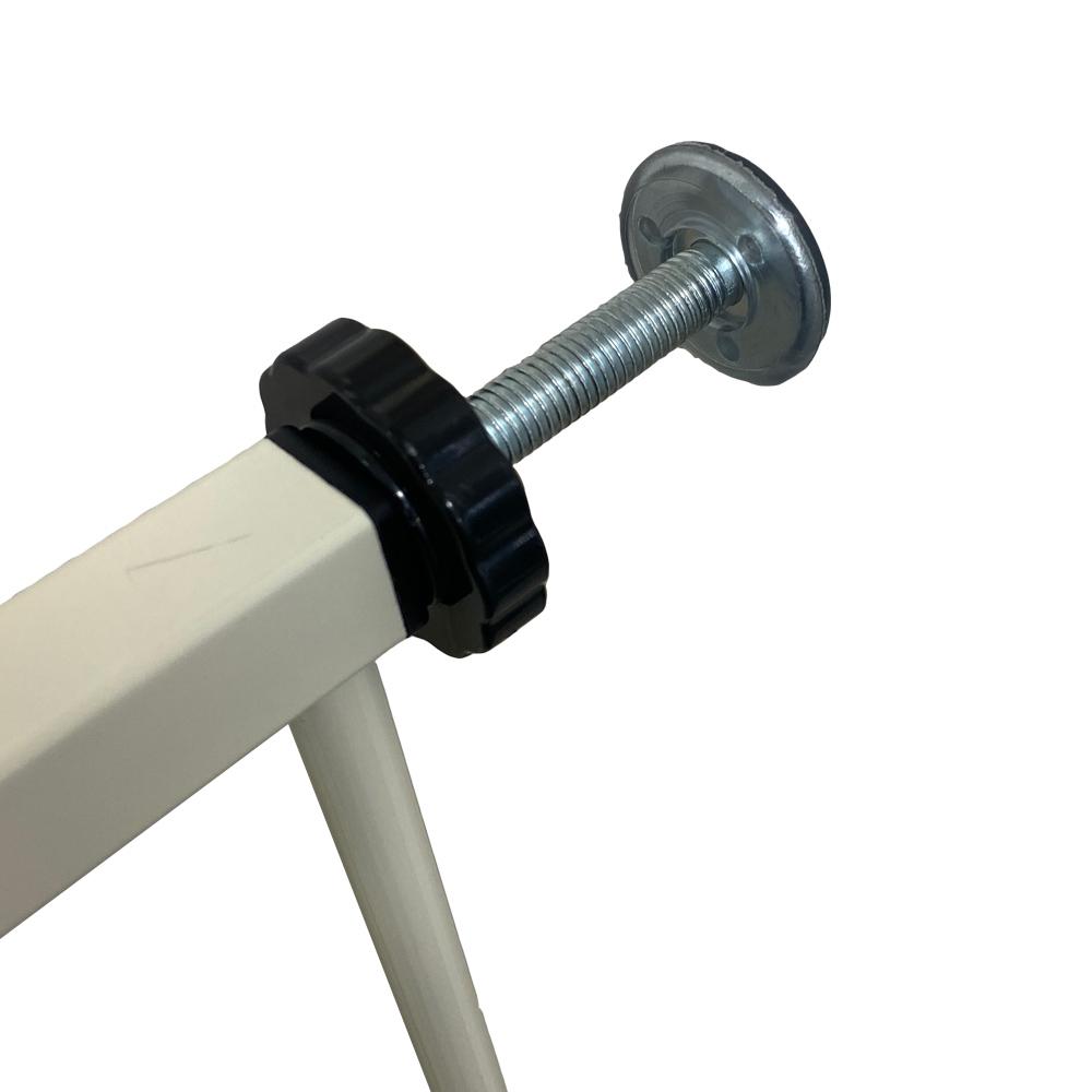 ・解放機能付き:90度以上開くと扉が止まり解放することができます。 ・オートクローズ:90度未満での開閉の使用時には、自動で扉が閉まりロックします。 ・片手でオープン:片手で簡単にロックを解除し、扉を開けることができます。 ・前後両開き:扉は前後どちらにも開閉可能です。 ・ダブルロック:安心・安全のダブルロックシステム。 ・拡張フレームをつけると94cmまで取り付けが可能です。 ・セット内容:本体、調節ボルト×4、調節ノブ×4