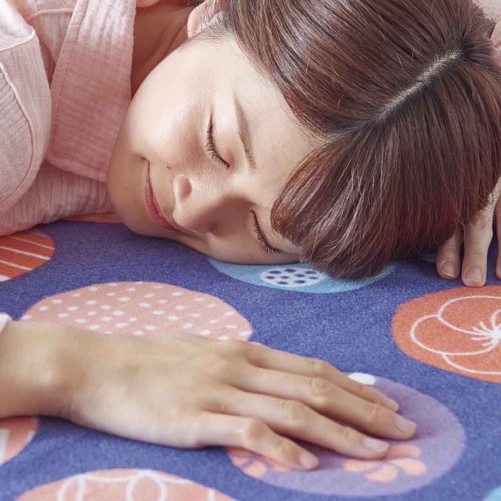 〇日本の伝統色にある和色「紺桔梗」とサクラをモチーフにしたオリジナルデザイをプリントした、肌に優しいコットン100%素材の電気綿毛布。〇ワイドサイズで大きいベットやマットでも充分な大きさ。〇切り忘れても安心、自動OFFタイマー付き。(12時間自動OFF、任意6/4/2時間設定可能)〇頭寒足熱配線 〇スライド式無段階温度調節 〇室温センサー 〇丸洗い可能(洗濯ネットを使用して洗濯機でも洗えます。※ドラム式洗濯機、乾燥機はご使用できません。) ●定格/交流100V-80W 50-60Hz共用 ●コード長/電源側 約1.9m、本体側 約1.0m ●表面温度/強:約52度、中:約36度、弱:約23度 ●電気代(1時間あたり)/強:約1.9円、中:約1.0円、弱:約0.2円(1kWh当たり31円で算出)●重量/約1.4kg ●保証期間/お買上げ日より1年