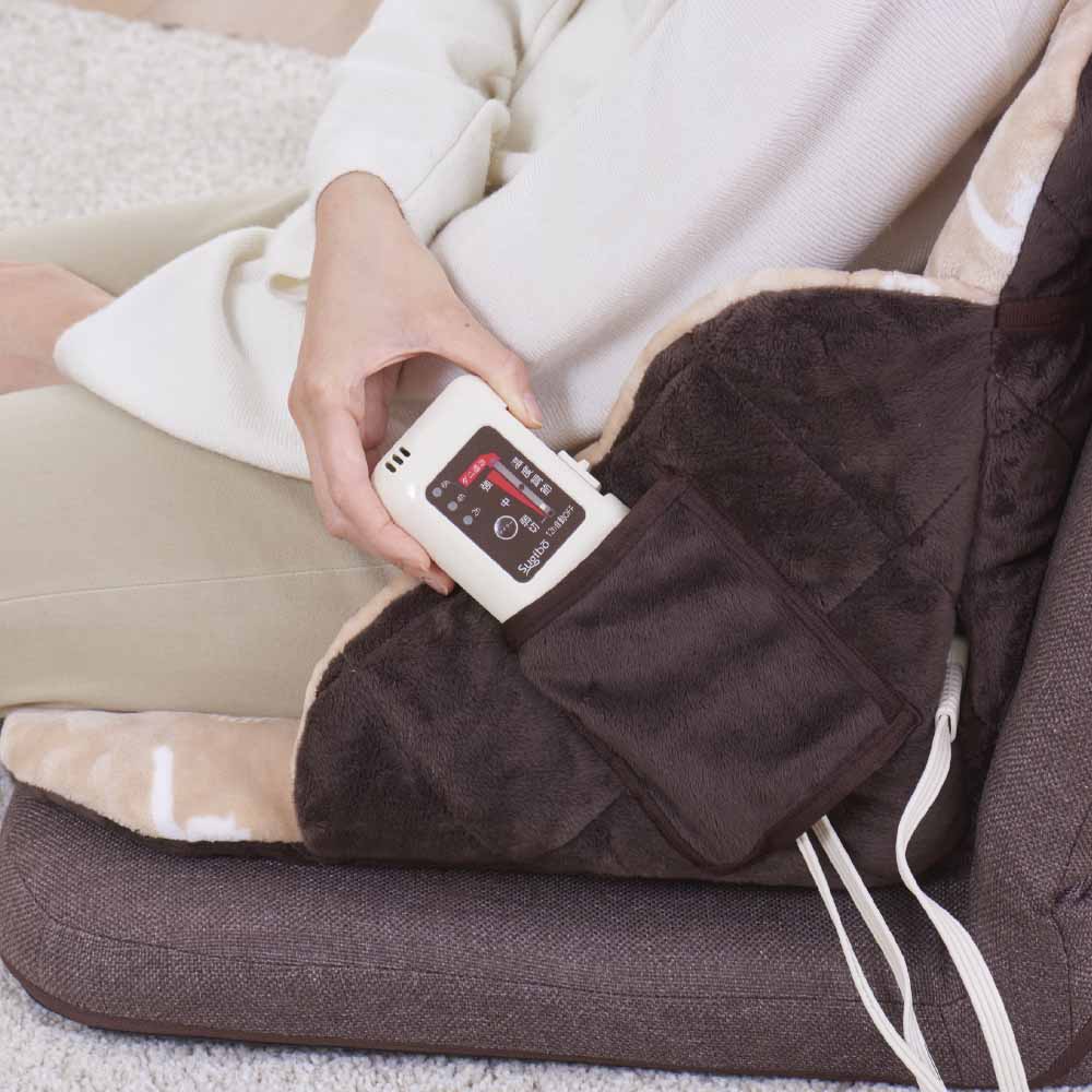 〇可愛らしい猫の姿がプリントされた生地は、とろけるような肌触りが気持ちいい座椅子型 のクッション。コントローラーを収納するポケットがついて、スッキリ収納して使うことができます。〇切り忘れても安心、自動OFFタイマー付き。(12時間自動OFF、任意6/4/2時間設定可能)〇操作しやすいスライド式温度調節。(暗い部屋でも見やすいバックライト付き) 〇急に冷え込んでも快適、室温センサー内蔵。(室温が約23度以下になると、設定から自動で約3度温度アップ) 〇取扱説明書の記載手順に従いダニ退治ができます。 〇カバーは丸洗い可能。(洗濯ネットを使用して洗濯機でも洗えます)●定格/交流100V-50W 50-60Hz共用 ●コード長/電源側 約1.9m、本体側 約0.6m ●表面温度/強:約52度 、中:約41度、弱:約28度 ●電気代(1時間あたり)/強:約0.57円、中:約0.32円、弱:約0.1円(1kWh当たり27円で算出)●重量/約1.1kg ●保証期間/お買上げ日より1年