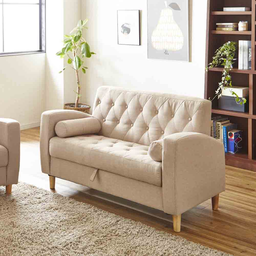 2人掛 2Pソファー 北欧 収納付き ファブリック 布 クッション付き グリーン