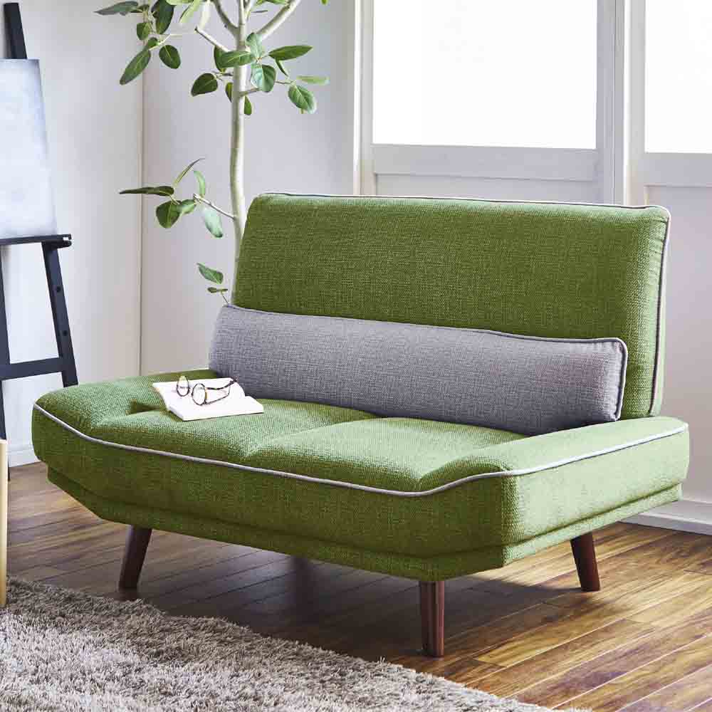 2人掛 2Pソファー 北欧 キズに強い ファブリック 布 クッション付き ペット対応 グリーン