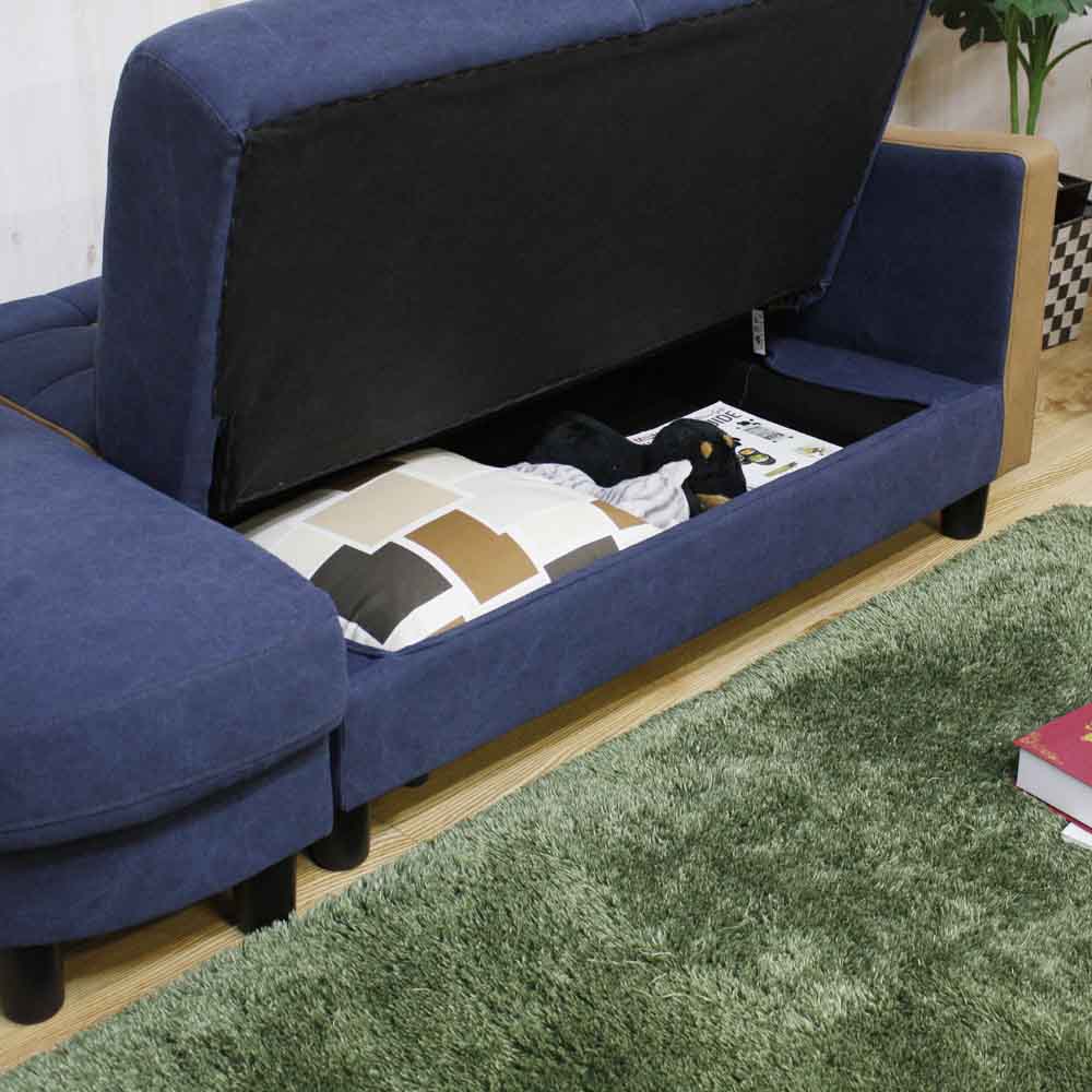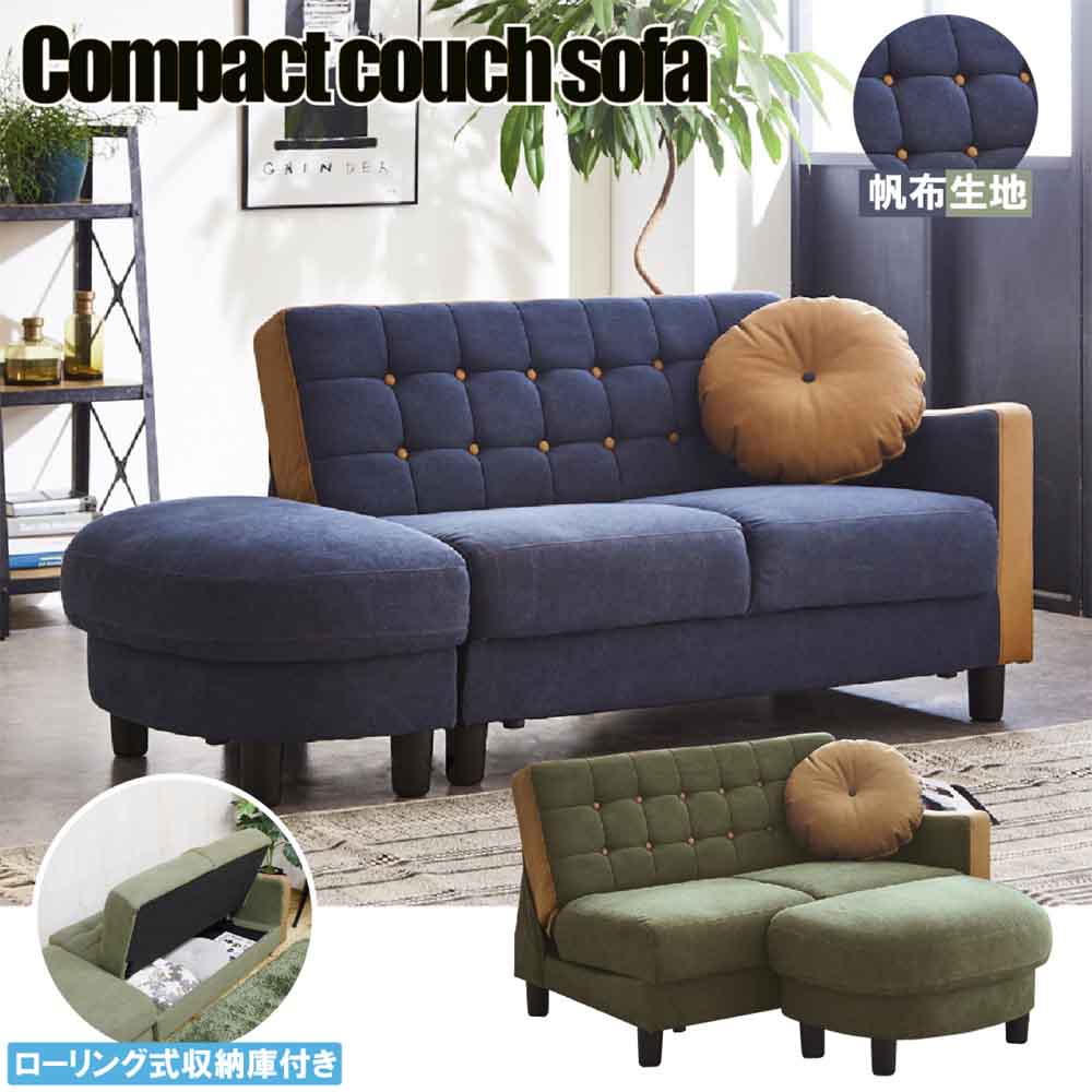 カウチ カウチソファー ソファ オットマン 収納付き ローリングギア ベッド 帆布生地 ブルー ネイビー