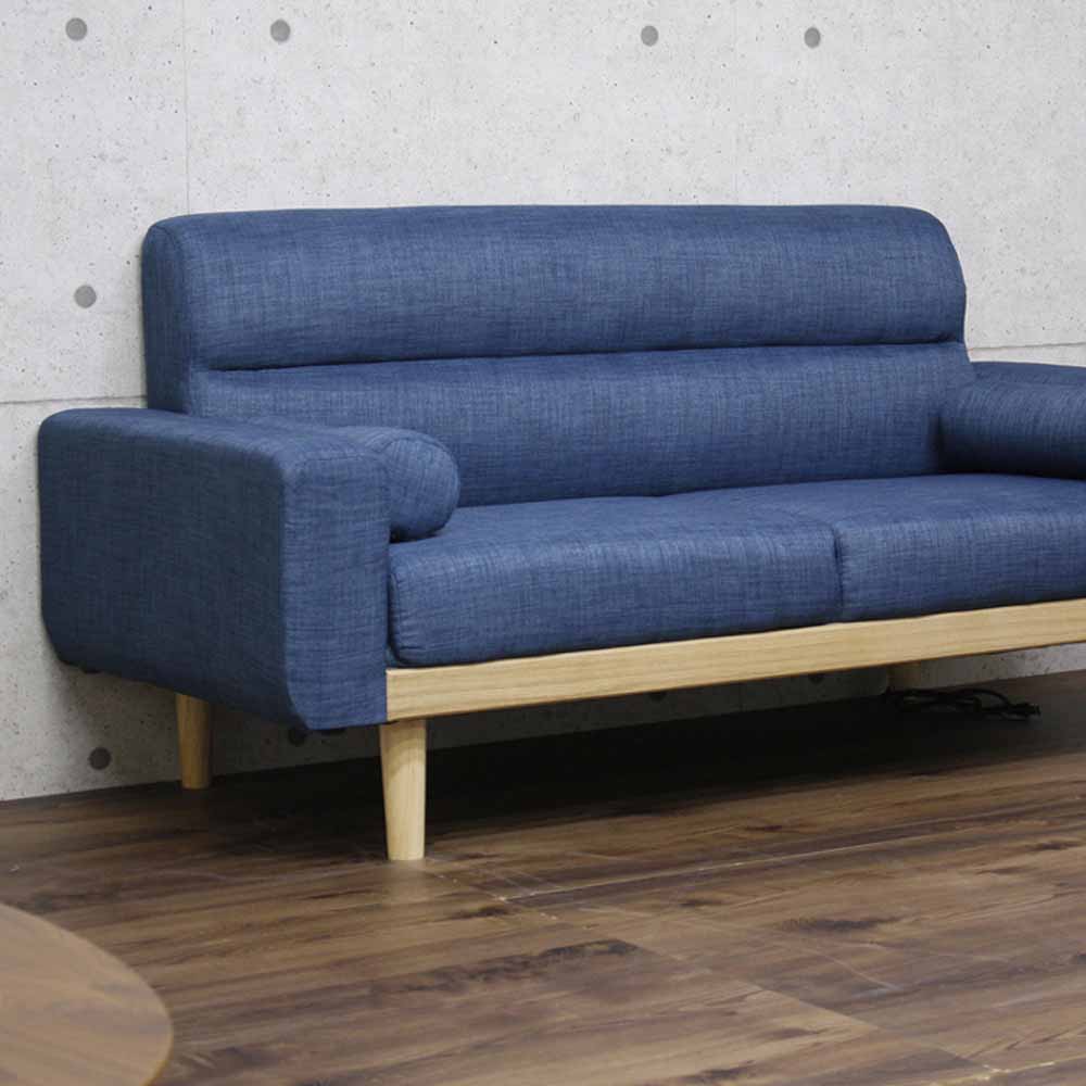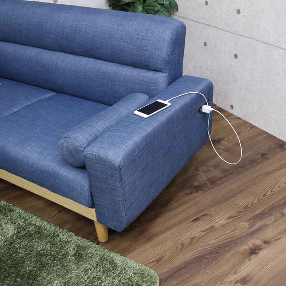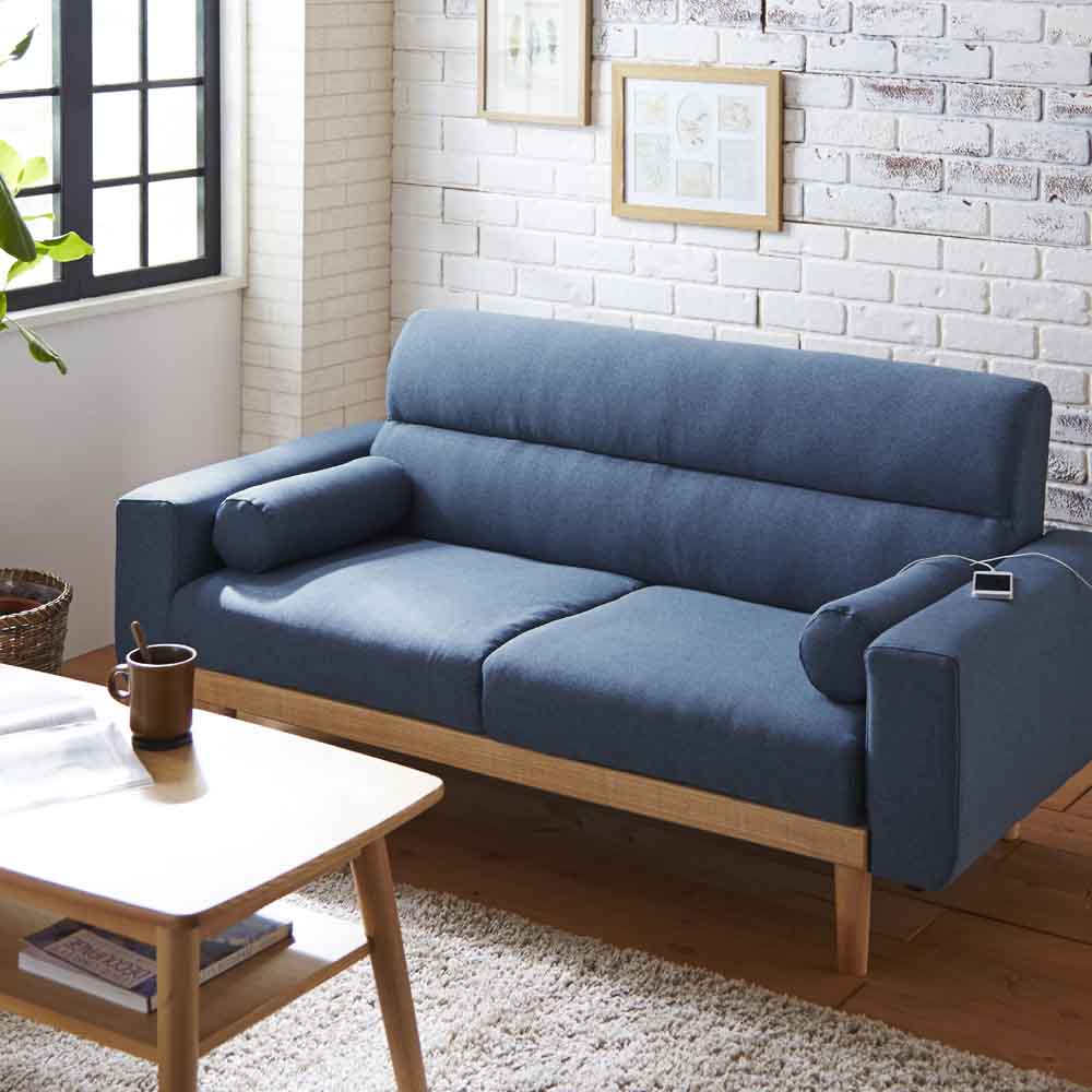 2人掛 2Pソファー 北欧 コンセント付き クッション付き お掃除ロボット対応 充電可能 ブルー