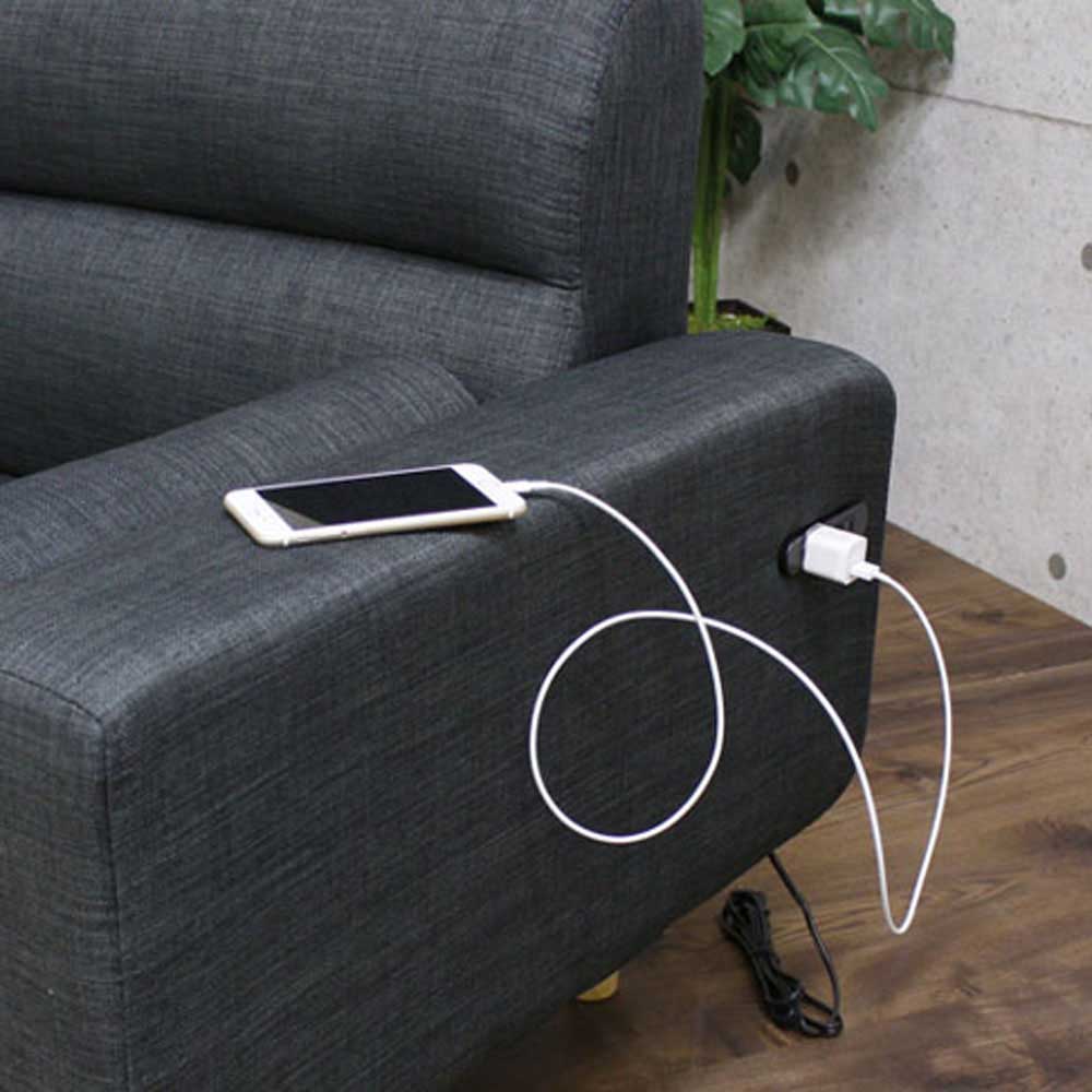 2人掛 2Pソファー 北欧 コンセント付き クッション付き お掃除ロボット対応 充電可能 グレー