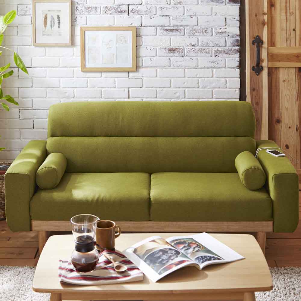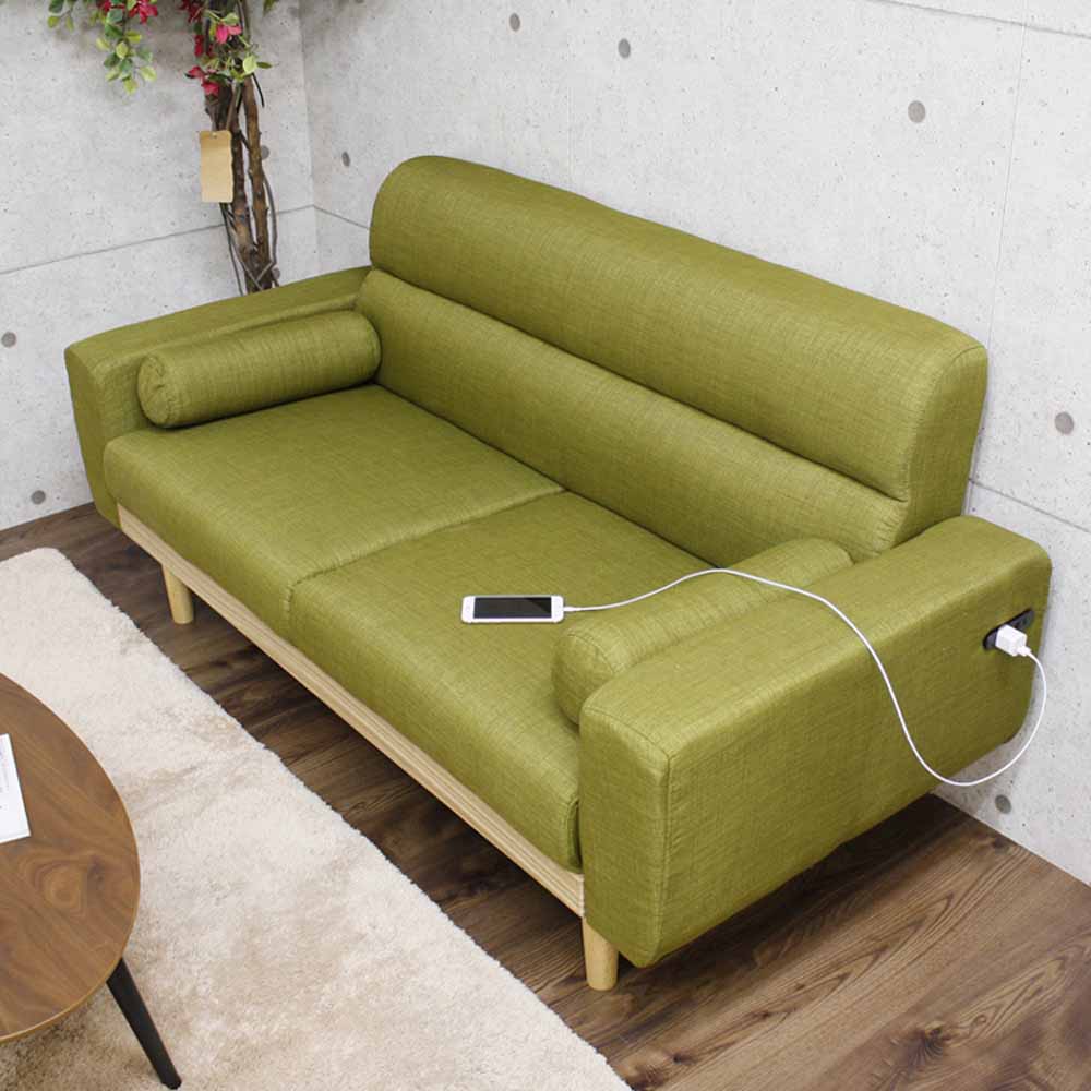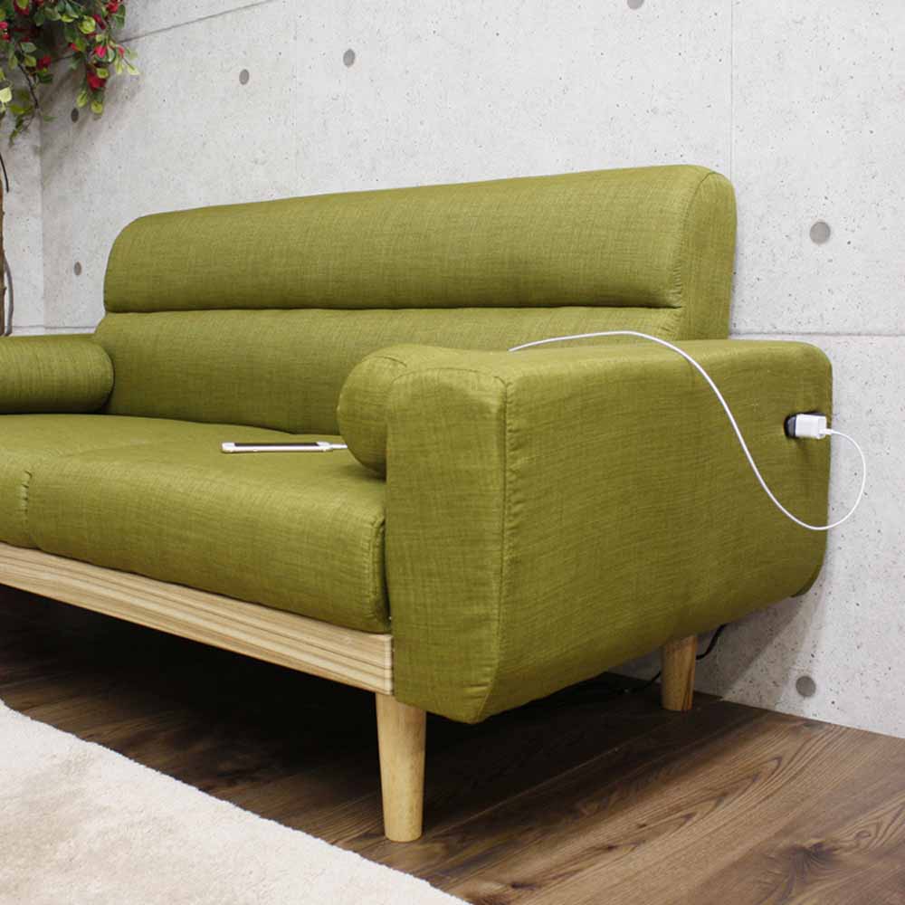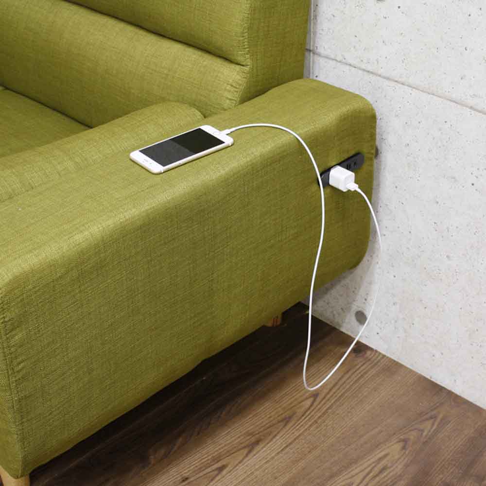 2人掛 2Pソファー 北欧 コンセント付き クッション付き お掃除ロボット対応 充電可能 グリーン
