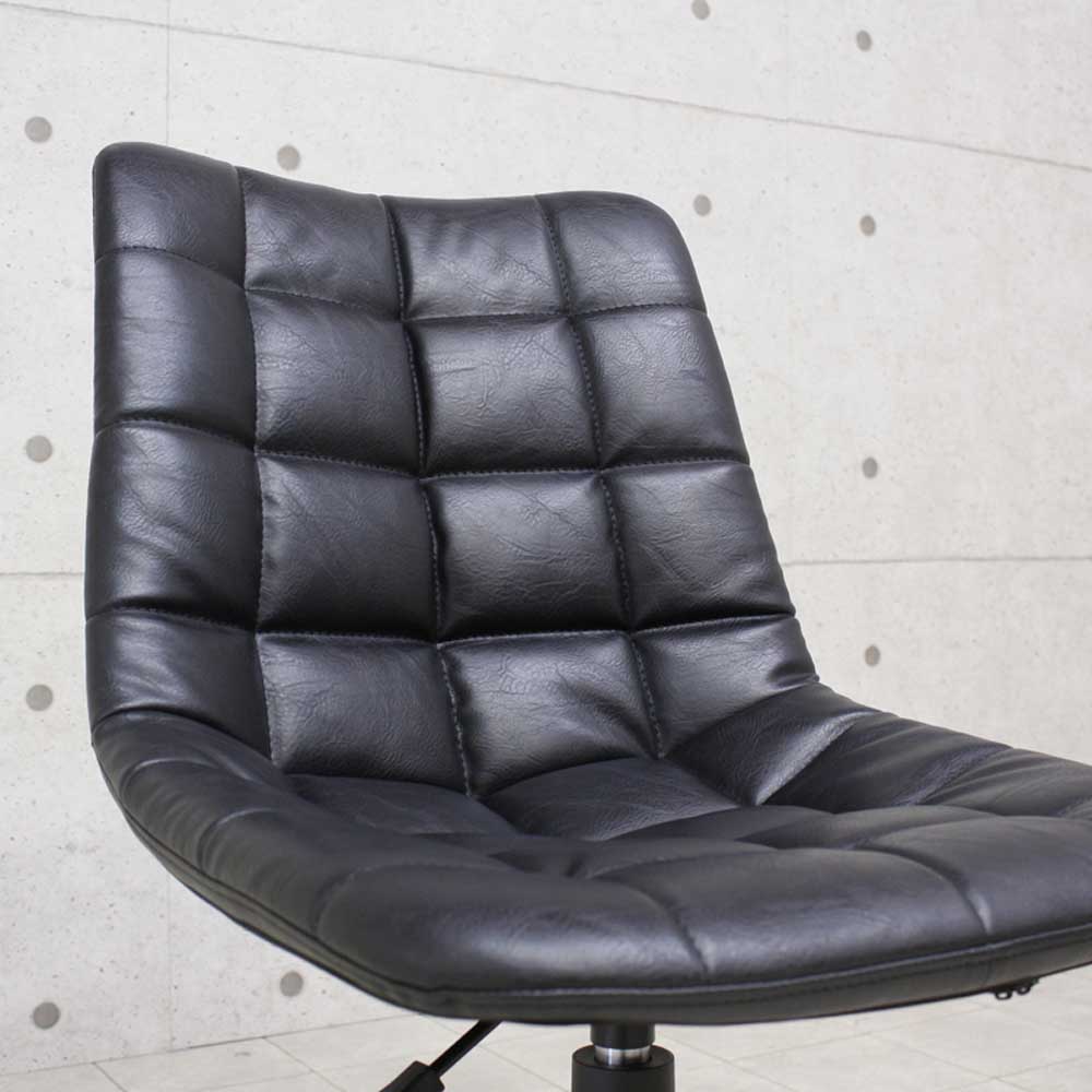●アンティークレザー調生地を採用したレトロなオフィスチェアー。●座面はガス圧式昇降で上げ下げも楽々。●バケット風座面なので背もたれにピッタリフィット。●座面高:44-50cm。●カラー:ブラック。●生産国:中国。