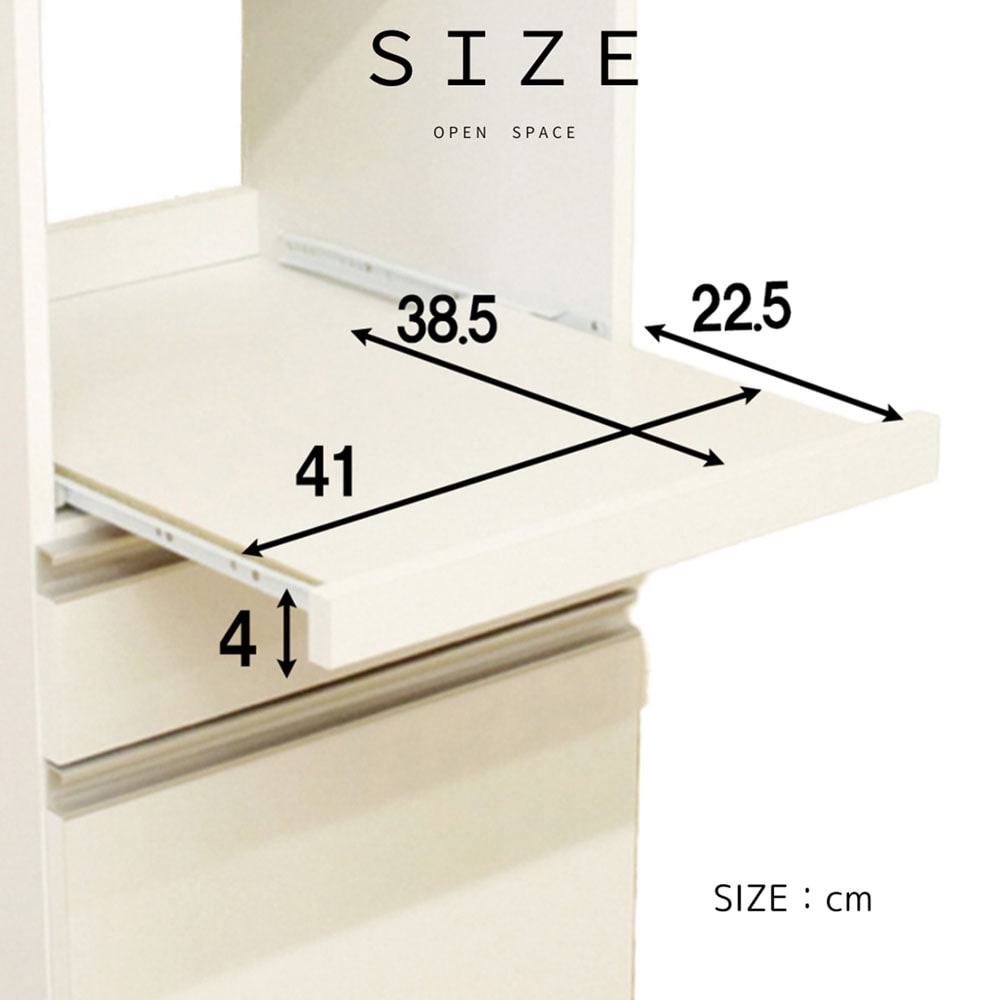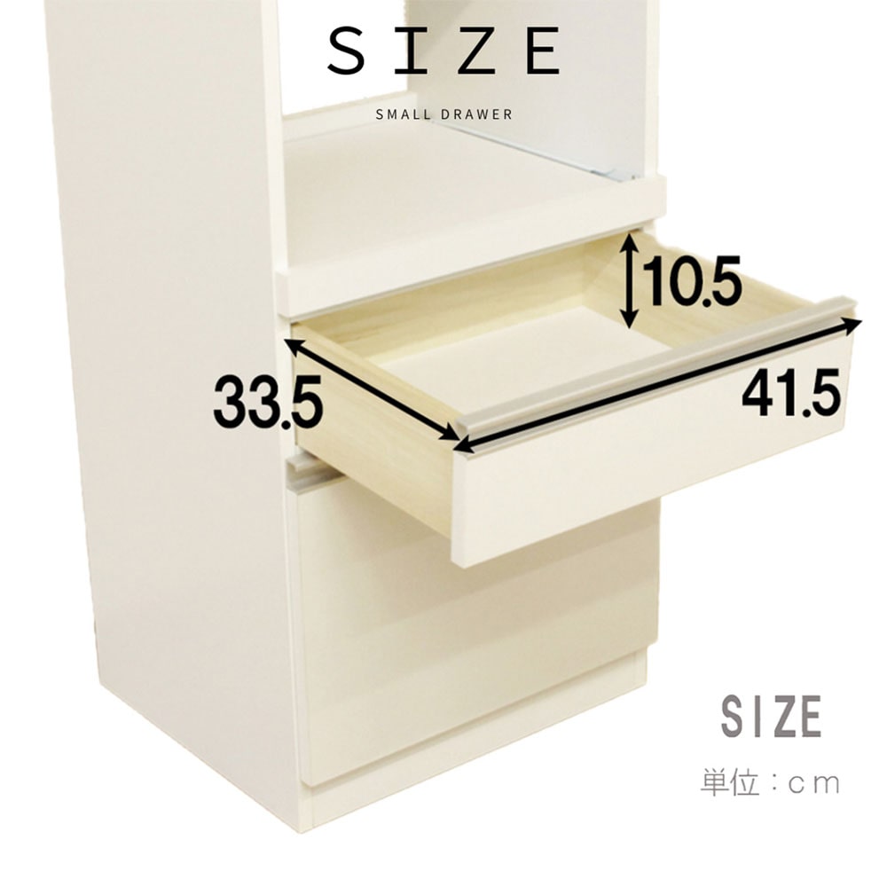 ●すぐに使える完成品で組立不要。●家具の産地【大川市】にて生産した国産コンパクトレンジ台。●スライドカウンターは、レール付きで出し入れ楽々。●スライドカウンター部分は、1口コンセント付き。●スライドカウンター内寸:幅43.5×奥38.5×高41cm。●引出し(大)内寸:幅39×奥33.5×高16cm。●引出し(小)内寸:幅41×奥33.5×高10.5cm。●カラー:ホワイト色。●生産国:日本。