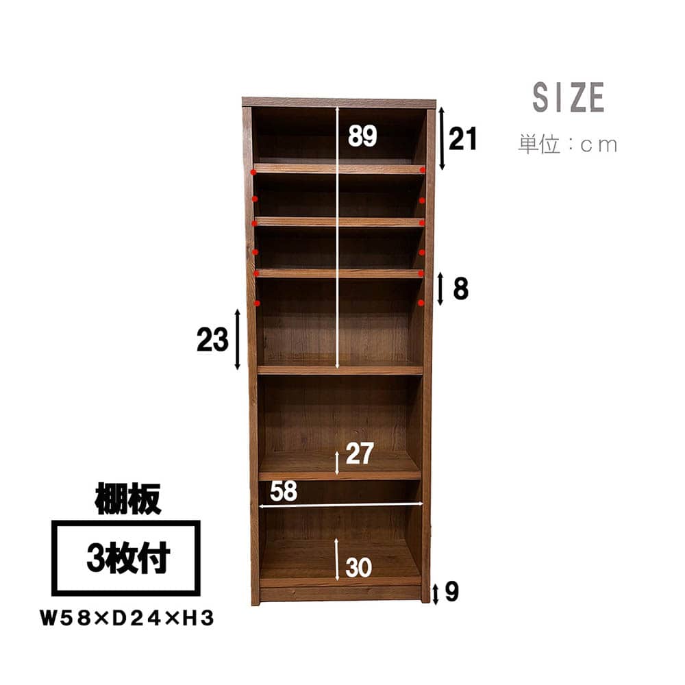 ●すぐに使える完成品で組立不要。●天面、側板面材には単板風の3mm厚の面材使用で高級感があり。●家具の産地【大川市】にて生産。●側面は台形でしっかりとした安定感を実現。●可動棚は、3枚付きで自由自在に収納可能。●可動棚耐荷重:10kg。●カラー:ブラウン色。●生産国:日本。