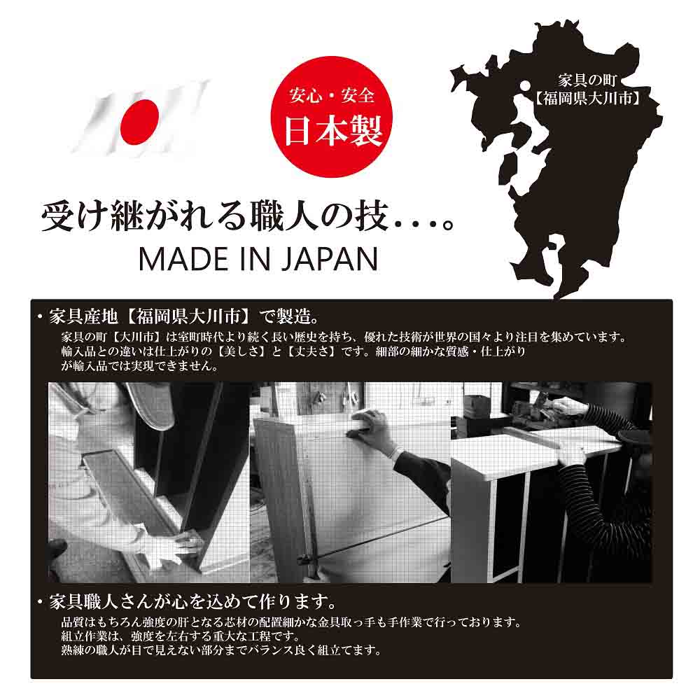 ●沖縄・離島のお客様には商品の発送ができません。●こちらの商品は室内家具となります。●商品は軒先渡しとなります。●脚のみお客様にて取付となります。●大川家具配送につき、リードタイムは7日~12日となります。●大型家具配送につき、時間指定はできません。
