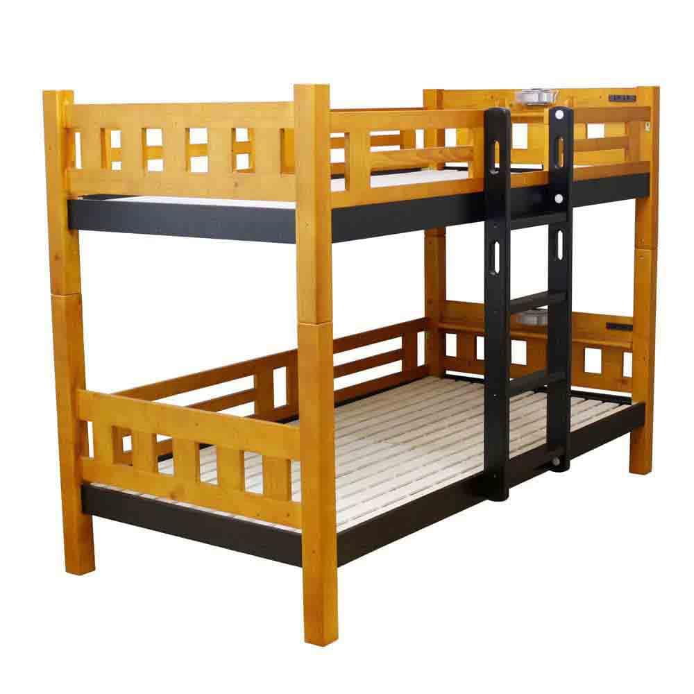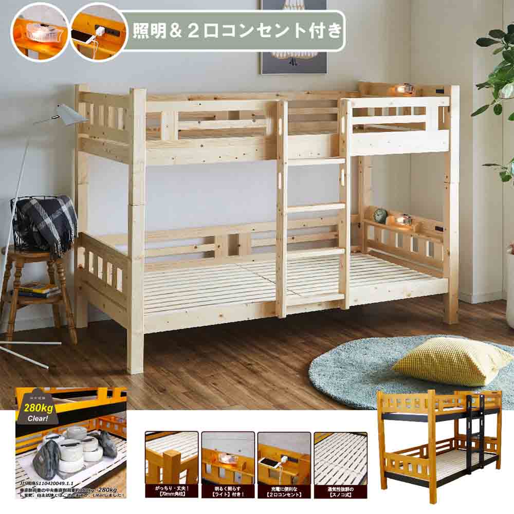 2段ベッド ベッド バンクベッド パイン材 フィンランドパイン 70角柱 スノコ式 照明付き コンセント付き