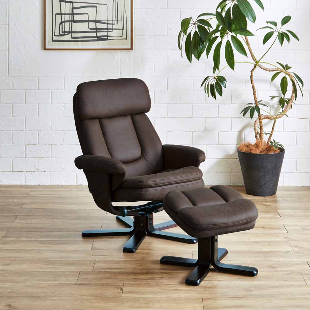 パーソナルチェアー PC ファブリックレザー リクライニング オットマン付き ダークブラウン DBR
