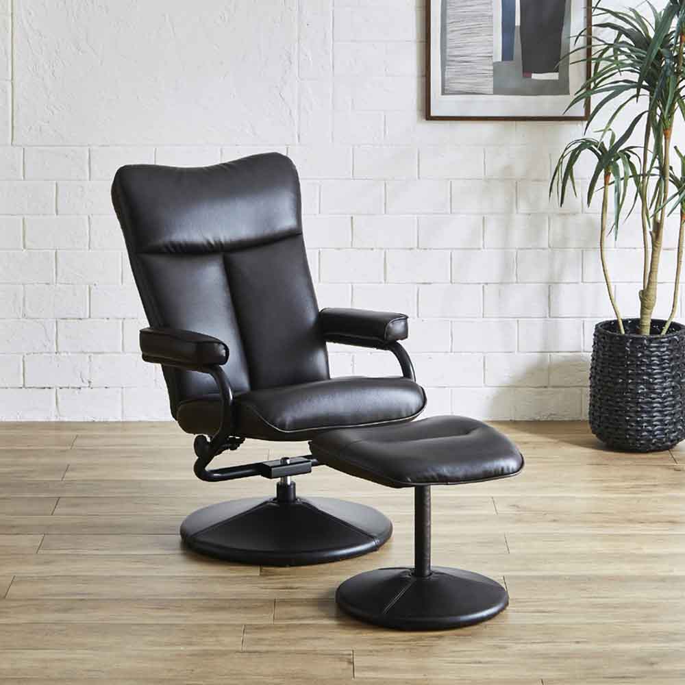 パーソナルチェアー オットマン付き ラウンジチェアー 回転式 ブラック