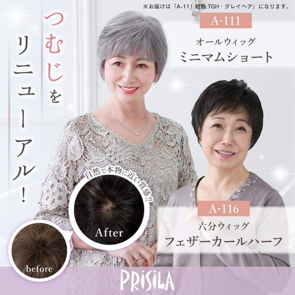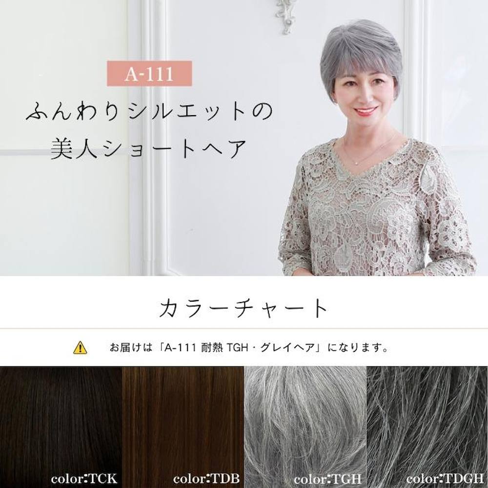 プリシラ オールウィッグ ミセス ミニマムショート A-111 耐熱 TGH・グレイヘア ふんわりシルエットの美人ショートヘア 【新ファイバー・伸縮キャップ】 人毛のような自然さの新ファイバーと、暑くなりにくく、つけ心地も快適な伸縮キャップを使用。 ※モニターの設定や機種、撮影の関係上実際とは色味が若干異なる場合がございます。予めご了承ください。 【返品・交換について】 以下の場合は返品・交換をお受けできません。 1.お客様の不注意により破損、不足、汚損した場合 2.お客様都合の場合(例:注文間違い。色、デザインが気に入らない。また思っていたものと違う場合など。) 3.上記「返品・交換対象」に該当するものであっても商品到着後8日以内にご連絡がなかった場合、また一度でも使用された場合 ※商品が届いたらすぐに内容をご確認ください。ウィッグは直接肌に着けるものであるため、開封・未開封に関わらず不良品以外の返品・交換はお受けしておりません。 (お求めの際はよくご確認の上ご購入をお願い致します)