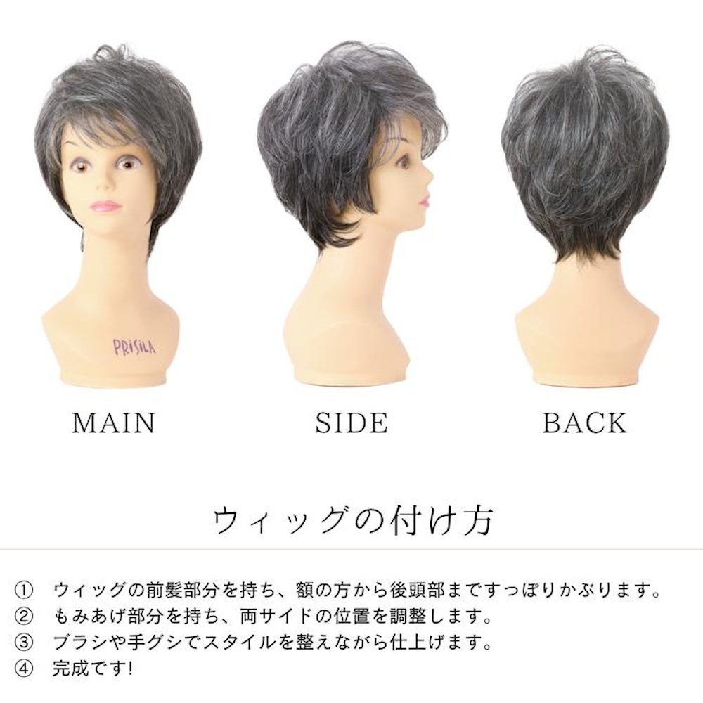 プリシラ ウィッグ ミニマムショート 耐熱ウィッグ ショートヘア ウィッグ フルウィッグ ミセス ダークグレイヘア ウィッグ A-111 ミセス ウィッグ 自然なショートヘア オールウィッグ レディース