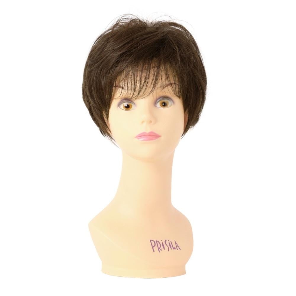 プリシラウィッグ 六分ウィッグ フェザーカールハーフ 耐熱ウィッグ 部分ウィッグ ミセスウィッグ ダークブラウンウィッグ 頭頂部カバーウィッグ 軽量ウィッグ 自然なハーフウィッグ