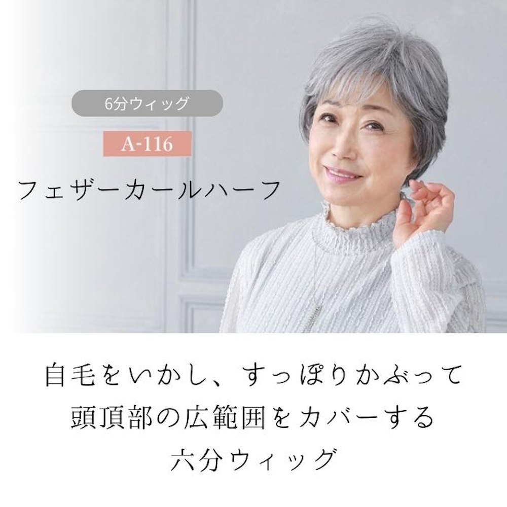 プリシラウィッグ 六分ウィッグ フェザーカールハーフ 耐熱ウィッグ 部分ウィッグ ミセスウィッグ グレイヘアウィッグ 頭頂部カバーウィッグ 軽量ウィッグ 自然なハーフウィッグ