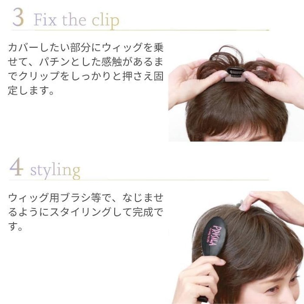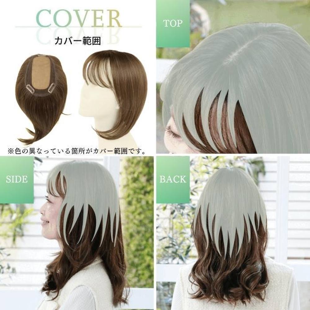 素材・材質:耐熱ファイバー100% 仕様:ウィッグのタイプ(【部分手植え】耐熱白髪隠しウィッグ頭頂部などのカバーに最適な部分かつら※前髪生え際ネット部分のみ手植え)、人工スキン有※シルクスキン採用、クリップ3個付き(前側:黒1個、後側:茶2個)