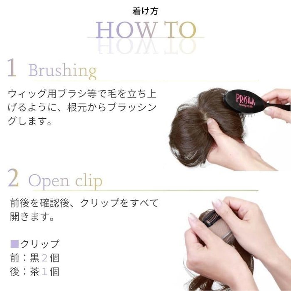 素材・材質:耐熱ファイバー100% 仕様:ウィッグのタイプ(【部分手植え】耐熱白髪隠しウィッグ、頭頂部などのカバーに最適な部分かつら、※前髪生え際ネット部分のみ手植え、※前髪生え際部分にうぶ毛カットあり)、人工スキン有※シルクスキン採用、クリップ3個付き(前側:黒1個、後側:茶2個)
