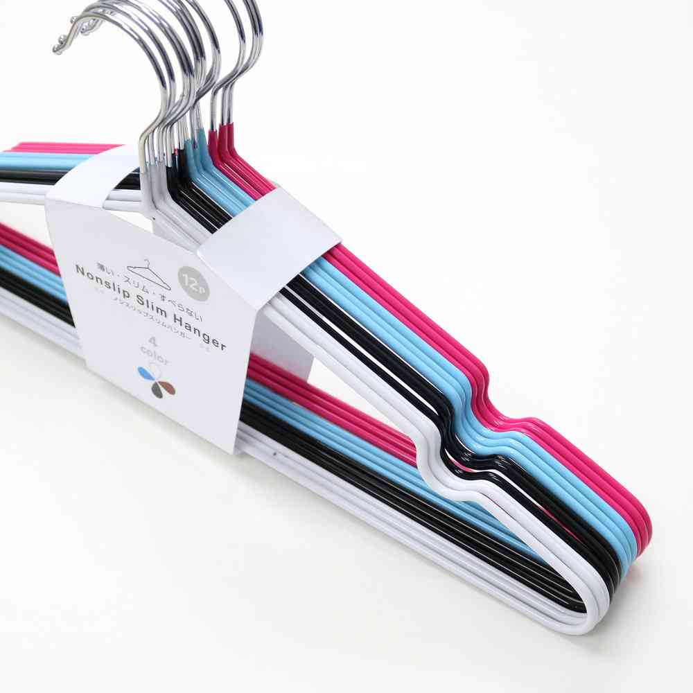 滑りにくいコーティングでカーディガンなどもしっかりキープできるノンスリップ仕様のハンガー。 厚みがとても薄いので、たくさん服をかけてもかさばらずクローゼットなどの収納力を大幅アップすることが可能です。