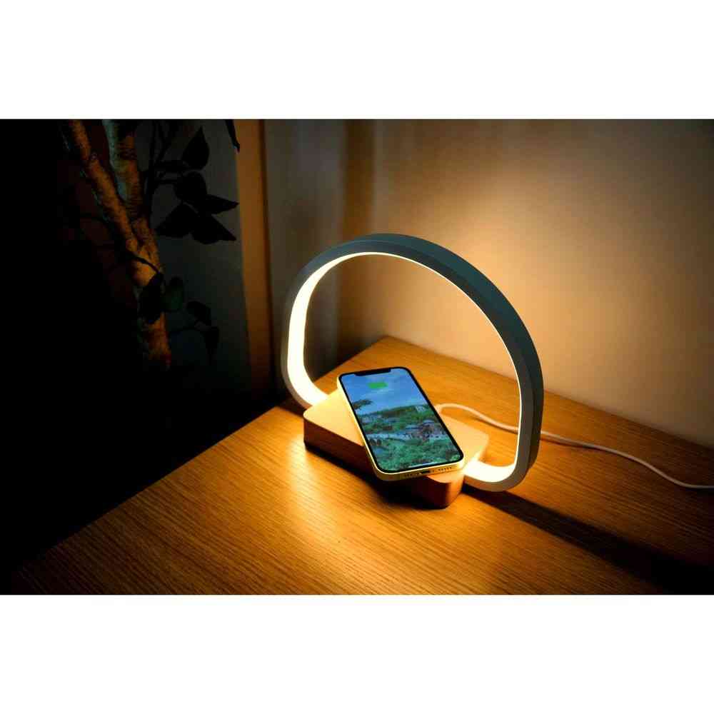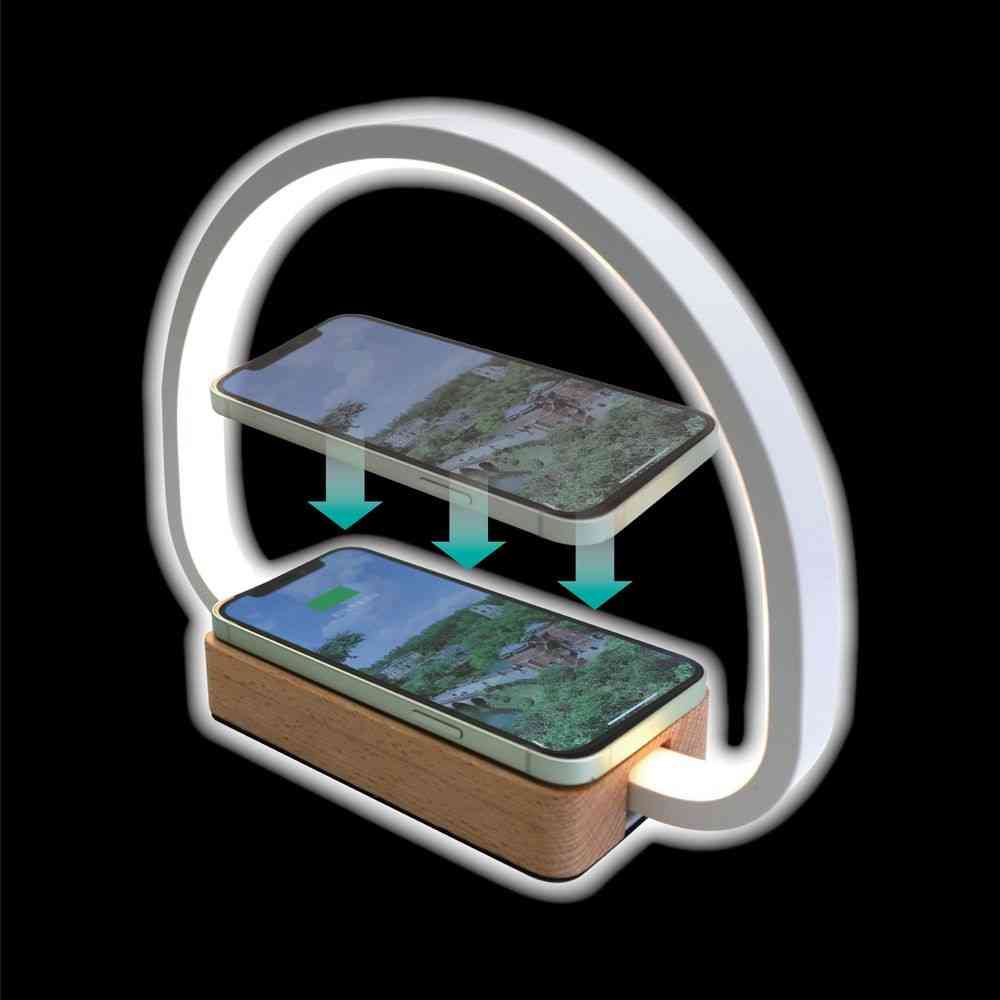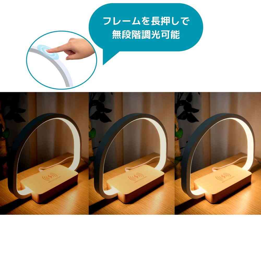 タッチセンサーLEDライトとワイヤレス充電器が一体化。 USB充電式。 2台同時充電可能。 ライトカラー3色切替、無段階調光機能付き。