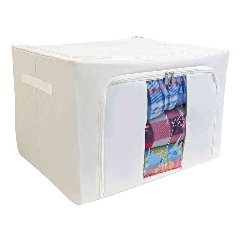 前からも出し入れできて便利な窓付きマルチ収納ボックス正面と側面に窓が付いているので、中身がすぐに確認でき、ワイヤーフレーム設計で積み重ねても型崩れしません。 全面にもファスナーがついているため、上に重ねたままでも荷物を取り出すことができます。 持ち手付きで楽に持ち運びができます。 使わないときは折りたたんでコンパクトに収納できます。 ●約66リットル大容量 ●耐荷重:天面全体に対して:10kg、持ち手:2kg