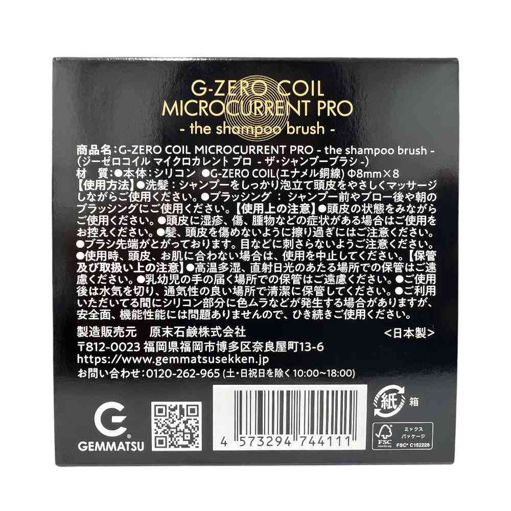 G-ZERO COIL MICROCURRENT PRO - the shampoo brush - は、頭皮へのマッサージ効果にすぐれた造形・素材・硬度だけでなく、電磁波や静電気を吸収し、美容・健康・スポーツの世界でいま、注目を集める「マイクロカレント(微弱電流)」を自然発生する「G-ZERO COIL(直径8mmタイプ×8)」を搭載した、マイクロカレント・シャンプーブラシです。 美容師を驚かせたのは、マイクロカレントを自発する「G-ZERO COIL」の働き。 泡の粒子をファインバブル化させたクリーミーな泡により、洗浄力を高め、髪を摩擦から守り、絡みも抑え、さらにキューティクルの補修までも。 髪と頭皮に滑らかに、心地よくアプローチし、その髪を「うるツヤ髪」へととのえていきます。 ■髪と頭皮に優しい効果 ・汚れを浮かせるファインバブル ・マイクロカレント(微弱電流)が美しい髪へ導く ・頭皮にもアプローチ ■様々なダメージに対応 ・ヘアカラーやパーマによるダメージ ・紫外線によるダメージ ・熱によるダメージ ・摩擦によるダメージ
