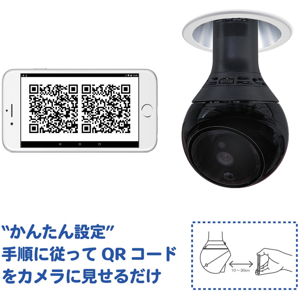 ●動きや音に反応して360度自動追尾するWi-Fiカメラです。●電球ソケットに差し込むだけで、簡単に取り付けできて配線工事も不要です。●専用アプリ(無料)を起動してQRコードをカメラに見せるだけで簡単に設定ができ、 端末追加も可能です。●iPhone/Android対応。PC(パソコン)でもライブ映像を確認できます。●幅(mm):100●奥行(mm):100●高さ(mm):210●最大画素数(万):200●色:ブラック●電源:AC100V~240V●消費電力(W):7.2(AC100V時)●解像度:FHD、HD、VGA、QVGA●電源(V):AC100V~240V●タイプ:360度自動追尾●寸法横幅(mm):100●寸法奥行(mm):100●寸法高さ(mm):210●対応OSバージョン:iOS 7.0/Android 4.1以降●ネットワークプロトコル:UDP/IP、HTTP/HTTPS、FTP、DHCP、NTP、WPS●イメージセンサー: 1/2.7インチ 200万画素CMOSセンサー●角度調整: 自動/手動(パン角: 360°、チルト角: 30°) 質量390g