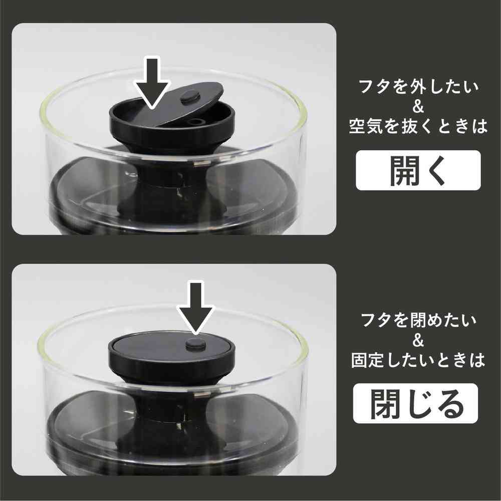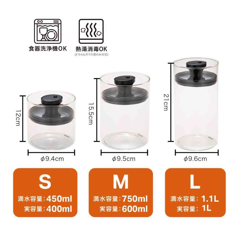 シリアル・ナッツ類・コーヒー豆・お菓子などを保存するのに便利な耐熱ガラスキャニスターです。 空気弁を開けたり閉めたりすることで、余分な空気を抜いて食材を傷みにくくすることができます。 場所をとらずに食材をたっぷり保存可能、ガラス製で残量もわかりやすくなっています。 口径が大きめなので、底部まで手が届きしっかり洗うことができます。 <仕様>満水容量:1.1L●実容量:1L●耐熱温度:120度●耐冷温度:-20度●食器洗浄機:使用可(ガラス部のみ)●熱湯消毒:可(ガラス部のみ)