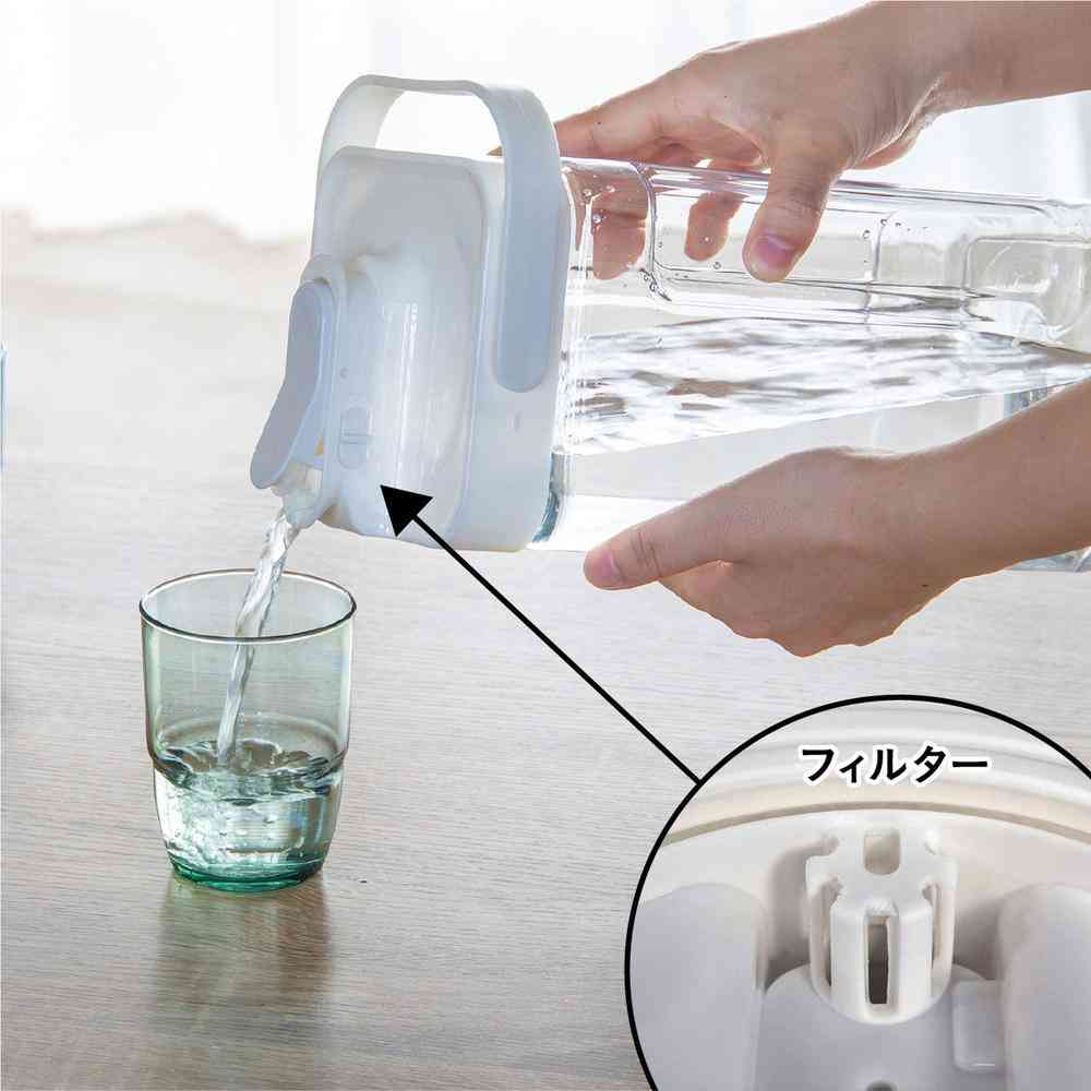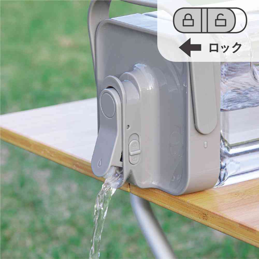 まるでウォーターサーバーのように、いつでも楽に冷たい飲料が飲めるジャグ。 冷蔵庫に入れたままワンプッシュで飲料を注げるので楽々です。 ハンドル付きなのでアウトドアシーンなどでの持ち運びにも便利。 プッシュボタンを押しながらロックすると、ボタンが固定されて押さなくても飲料が出続けます。 ロックを解除した場合、プッシュボタンを押したときだけ飲料が出ます。 ハンドル付きなのでキャンプやBBQなどに気軽に持ち出すことが出来ます。 実容量3.5Lと大容量なので、家族や友人たちで集まる場所に置いておけば各々自由に飲料を飲めて便利です。 <仕様>実容量:3.5L●耐荷重:3.7kg●耐熱温度:-20~80度