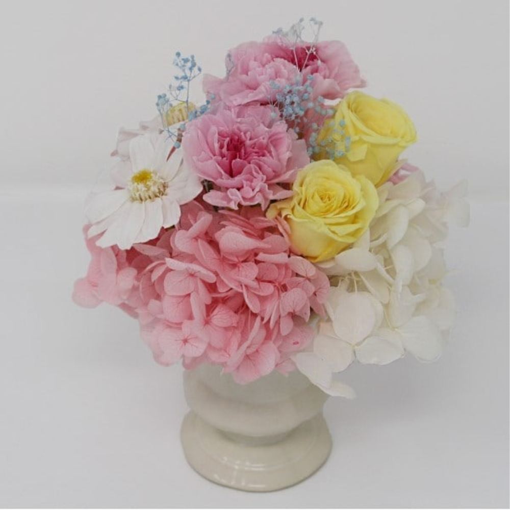 プリザーブドフラワーは人間が生活する中で快適な状況であれば長持ちします。ただ、直射日光やエアコンなどの冷暖房風には弱いのでそういった場所を避けてご使用ください。水やりはしないでください。