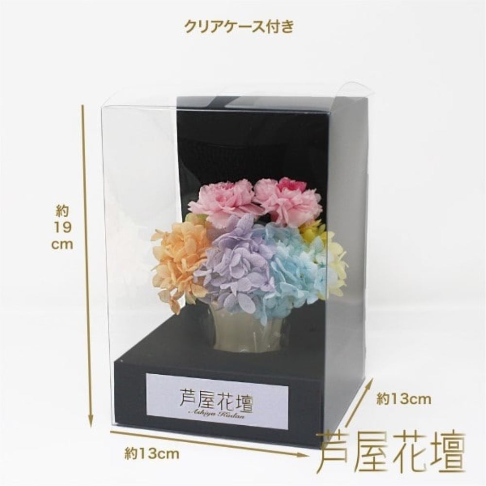 プリザーブドフラワーのため水やり、お手入れがいりません。長期間(目安1年程度)交換不要で美しい状態のままです。生花を加工したものなので、造花が苦手な方でもためらうことなくお供えできます。全て天然素材のものを使用。造花は一切使用しておりません。長期間使用できるので経済的。プリザーブド加工(自然のお花や木に特殊な液体を吸わせたりすることで長持ちさせる加工)を施しているので、長く楽しむことができます。クリアケースに入っているのでホコリをかぶる心配もいりません。ひとつひとつハンドメイド製作。花材の自然な生かして製作!!A&K社の商品は全て天然素材の花材を使用し、一切造花は使用しておりません。また、全ての商品をハンドメイド(手作り)で行っています。国産品、国内製造にこだわりを持った商品です。