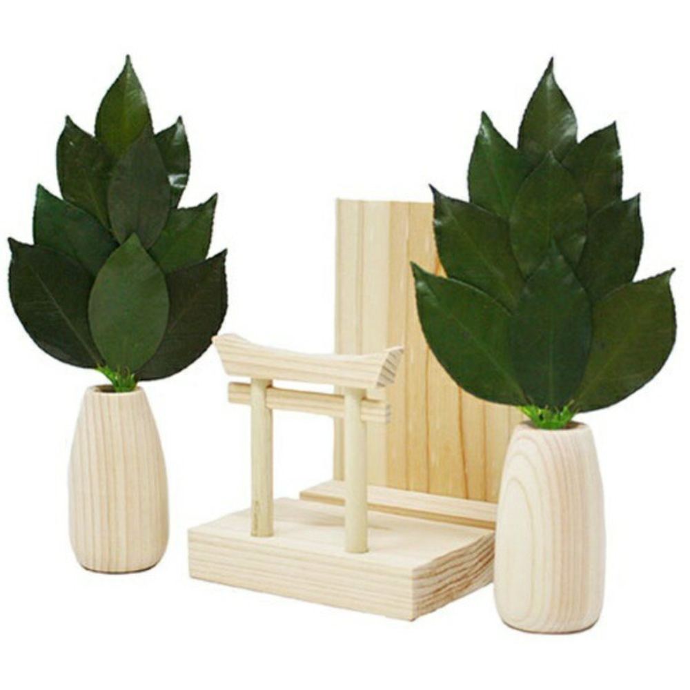 1年間交換不要で水やりもいらない榊とオールヒノキの丸い榊立て、鳥居がついたモダン神棚のセットです!全てがセットになっているのはこれだけ。プリザーブド榊と高級な建築材である「ヒノキ」を使ったシンプルな作り!洋風のリビングにもインテリアとして置くことができ、神札やご朱印帳などを飾ることができます。