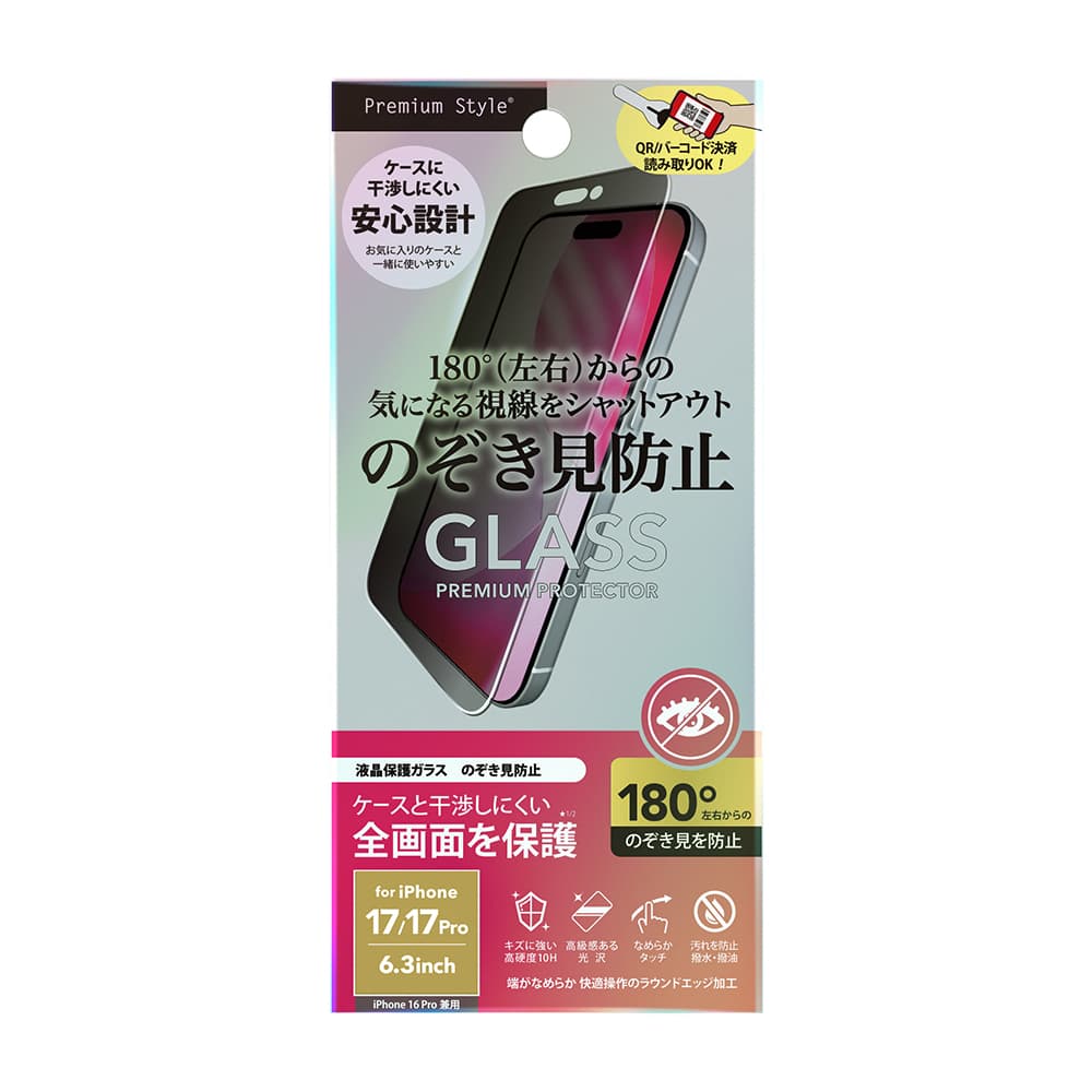 「PG-25AGL18MB」は、硬度10Hの強化ガラスを採用したiPhone 17/17 Pro/16 Pro用 液晶全画面保護ガラス 180°のぞき見防止です。 特殊ブラインド加工により、180°左右からの画面表示を見えづらくし、満員電車などでもプライバシーを守れます。 表面硬度10Hで液晶画面をキズから守ります。 万が一ガラスが割れても飛び散らない飛散防止加工済みです。 優れた操作性と使用感の追求、画面操作を邪魔しない滑らかなな指どおりを実現する為、撥水・撥油加工を施しました。 また、貼り付け時に付く細かな気泡も消える素材を採用しております。 保護ケースに干渉しにくい安心設計。 QR/バーコード決済 読み取り対応。
