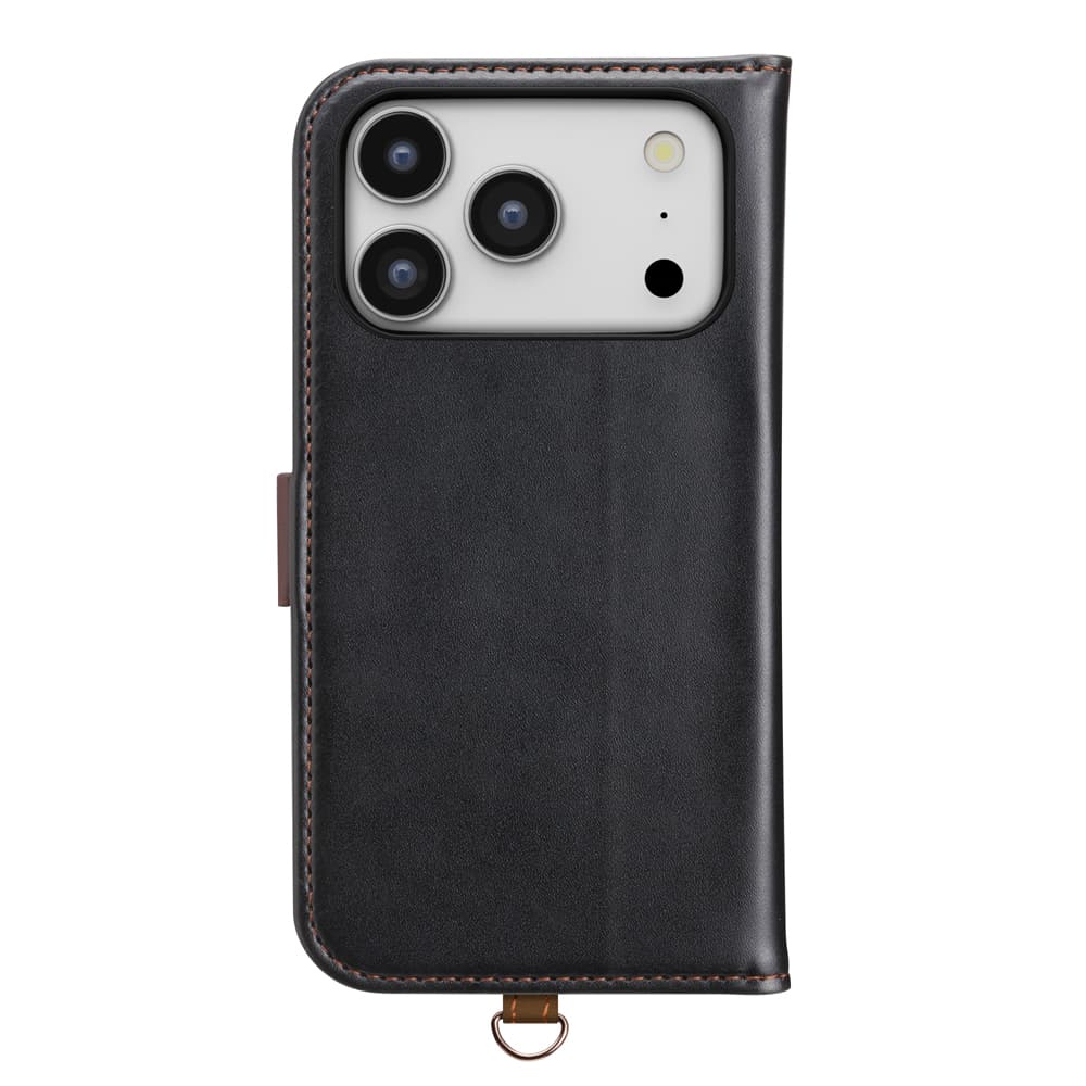 「PG-25BFP02BK」は、風合いの良い上質なPUレザー素材を使用したiPhone 17 Pro用 フリップカバーです。 上品で手触りのいいPUレザーは、シンプルなiPhoneのデザインとぴったりマッチします。 特許取得済みのマグネットロックで、ラクラクカバーを開閉する事が可能。 便利な横スタンド機能で動画の視聴をお楽しみ頂けます。 通勤通学やお買い物に便利な2つのカードポケット・ショルダーストラップを取り付けするのに最適なストラップホール付き。 カバーを付けたままワイヤレス充電が可能です。