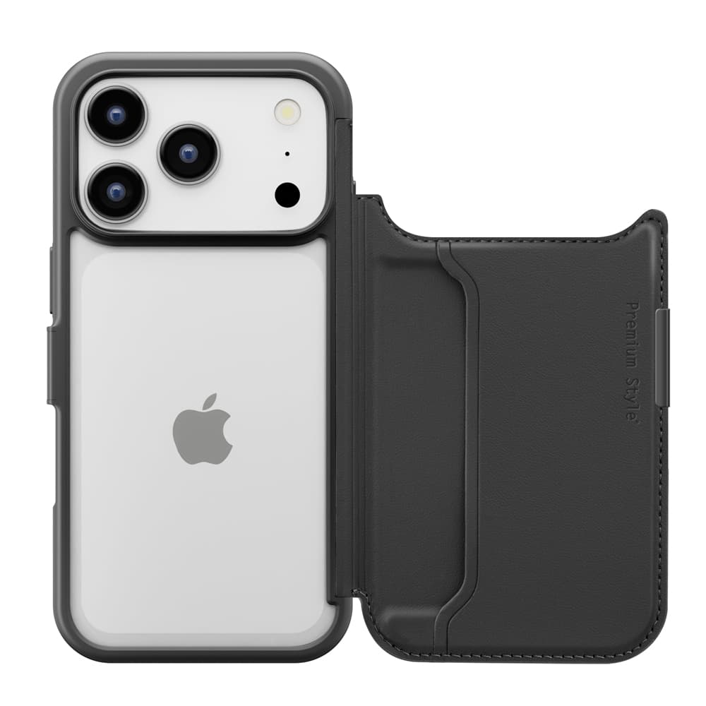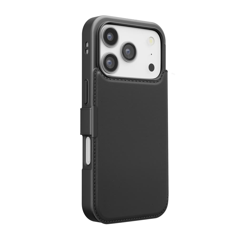 「PG-25BBF01BK」は、手帳型ならではの煩わしいカバーの開け閉めを解消する為、フリップを背面に移動したiPhone 17 Pro用 バックフリップケースです。 ケース背面は、クリアデザインなのでシールや写真を入れて自分好みにカスタマイズすることが出来ます。 背面のフリップ部は、風合いの良い上質なPUレザーを使用し、通勤通学やお買い物に便利なカードポケットが付いています。 背面フリップが背面クリア部分を覆い隠す為、目立たず「推し活」したい方に適したデザインです。 お手持ちのストラップをつけて落下を防げるストラップホール付き。