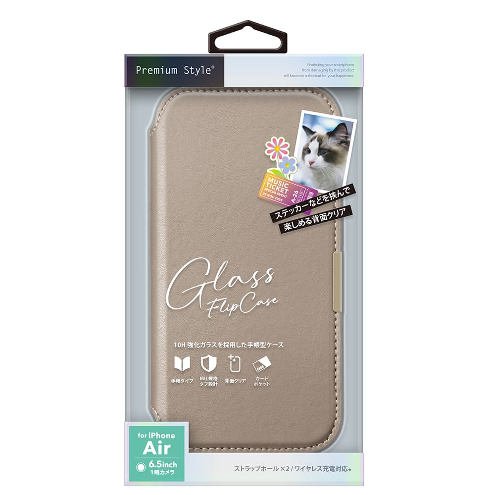 「PG-25CGF02BE」は、デザインと機能性を追求したiPhone Air用 ガラスフリップケースです。 スタイリッシュなラウンドデザイン。 風合い良い上質なPUレザー素材のカバーでiPhoneの液晶画面をしっかり護ります。 MIL規格(MIL-STD-810G)の2項目、落下・振動に準拠した試験をクリアしたタフ設計。 ケースの内面はマグネットロック機能搭載でラクラクカバーを開閉することが可能。 背面はクリアガラス仕様なのでシールや写真を入れて自分好みにカスタマイズすることが出来ます。 通勤通学やお買い物に便利なカードポケット・お手持ちのストラップをつけて落下を防げるストラップホール付き。 ケースを付けたままワイヤレス充電が可能です。 [特許取得済み]