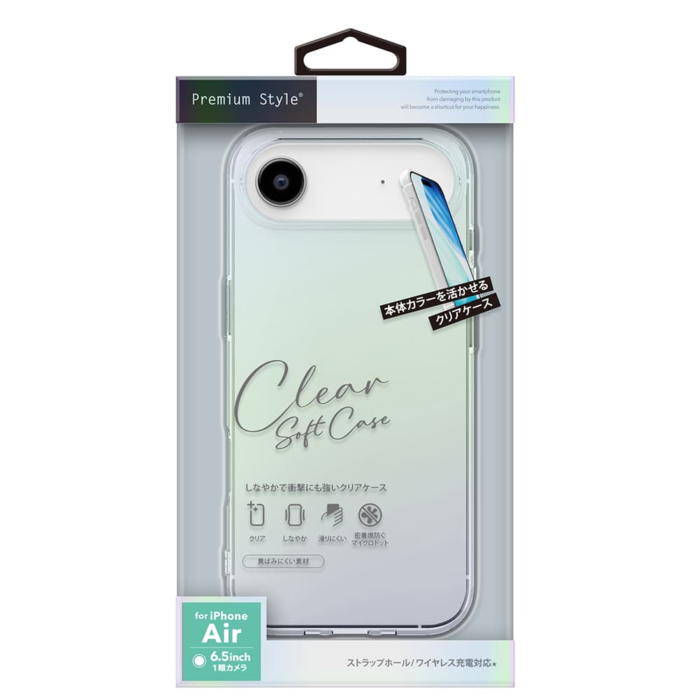 「PG-25CTP02AR」は、iPhone本体を色鮮やかに彩るオーロラカラーのiPhone Air用 クリアソフトケースです。 しなやかで柔軟性に優れたTPU素材で端末本体をキズや衝撃から護ります。 ケースと本体の貼り付きを防止するため、ケース内側にマイクロドット加工を施しています。 ケースを付けたままワイヤレス充電が可能です。 お手持ちのストラップを付けて落下を防止できるストラップホール付き。