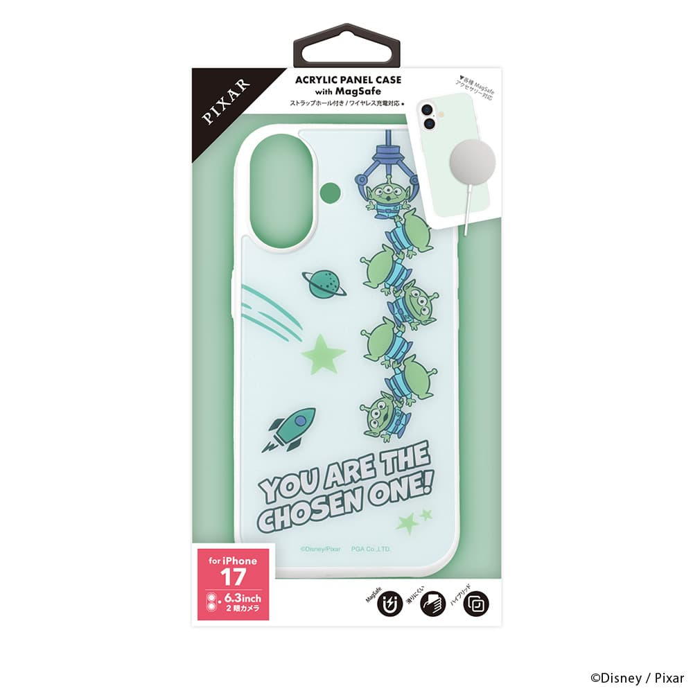 「PG-D25AMP04LGM」は、ピクサーキャラクターデザインの各種MagSafeアクセサリーに対応したiPhone 17用 アクリルパネルケースです。 背面は美しい光沢でデザインを活かすアクリル素材を使用し、側面はキズや衝撃にも強いTPU素材を使用しています。 マグネットリング搭載で各種MagSafeアクセサリーをピタッと簡単装着できます。 お手持ちのストラップをつけて落下を防げるストラップホール付き。