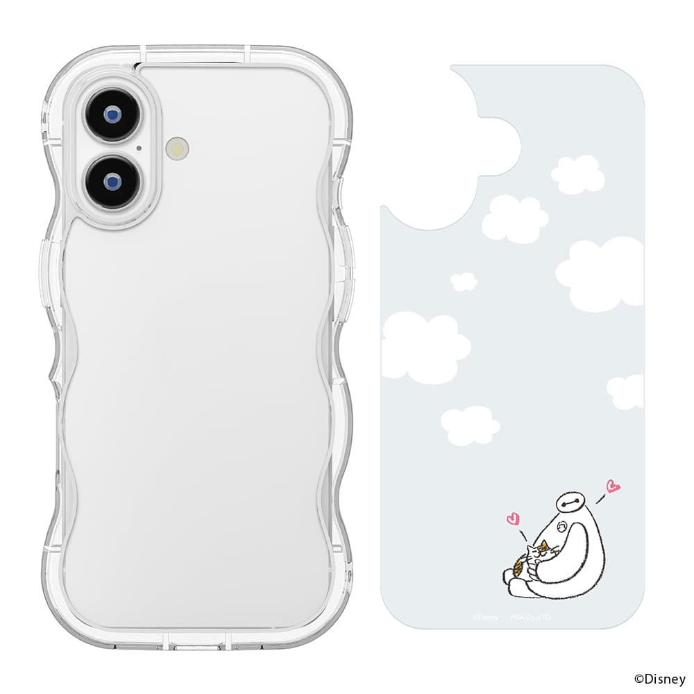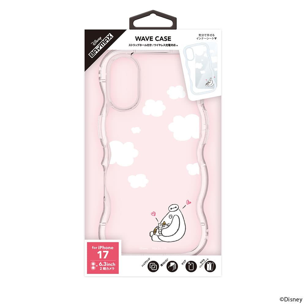 「PG-D25AWH02BAY」は、ディズニーキャラクターデザインの着せ替えシートがセットになったiPhone 17用 ウェーブケースです。 iPhone本体の色を活かす透明タイプの着せ替えシートは気分に合わせて取り外しが可能です。 波打つデザインが可愛らしいウェーブケースは、耐久性のあるポリカーボネイトとしなやかなTPUを組み合わせたハイブリッド設計で端末本体をしっかり保護します。 ケースを付けたままワイヤレス充電が可能です。 お手持ちのストラップをつけて落下を防げるストラップホール付き。