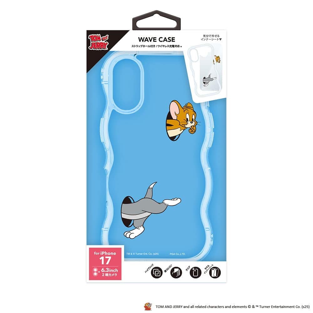 「PG-W25AWH02TAJ」は、「トムとジェリー」デザインの着せ替えシートがセットになったiPhone 17用 ウェーブケースです。 iPhone本体の色を活かす透明タイプの着せ替えシートは気分に合わせて取り外しが可能です。 波打つデザインが可愛らしいウェーブケースは、耐久性のあるポリカーボネイトとしなやかなTPUを組み合わせたハイブリッド設計で端末本体をしっかり保護します。 ケースを付けたままワイヤレス充電が可能です。 お手持ちのストラップをつけて落下を防げるストラップホール付き。