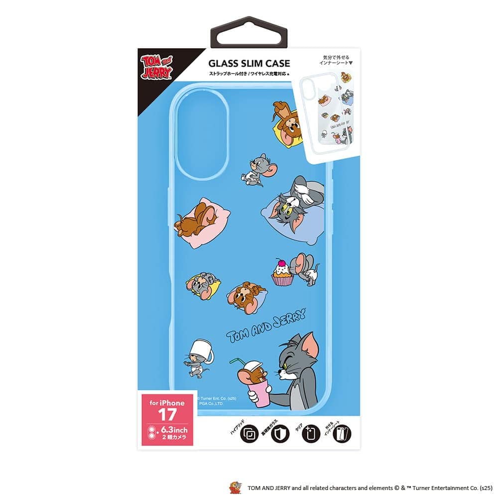 「PG-W25AGT01TAJ」は、「トムとジェリー」デザインの着せ替えシートがセットになったiPhone 17用 ガラススリムケースです。 iPhone本体の色を活かす透明タイプの着せ替えシートは気分に合わせて取り外しが可能です。 ケース背面はキズに強い高硬度10Hガラスを採用、ガラスが万一割れてしまっても、安全な飛散防止加工済み。 ケース側面部分はやわらかく丈夫なTPU素材でボタン周りもしっかり保護、着脱も簡単です。 お手持ちのストラップをつけて落下を防げるストラップホール付き。 ケースを付けたままワイヤレス充電が可能です。