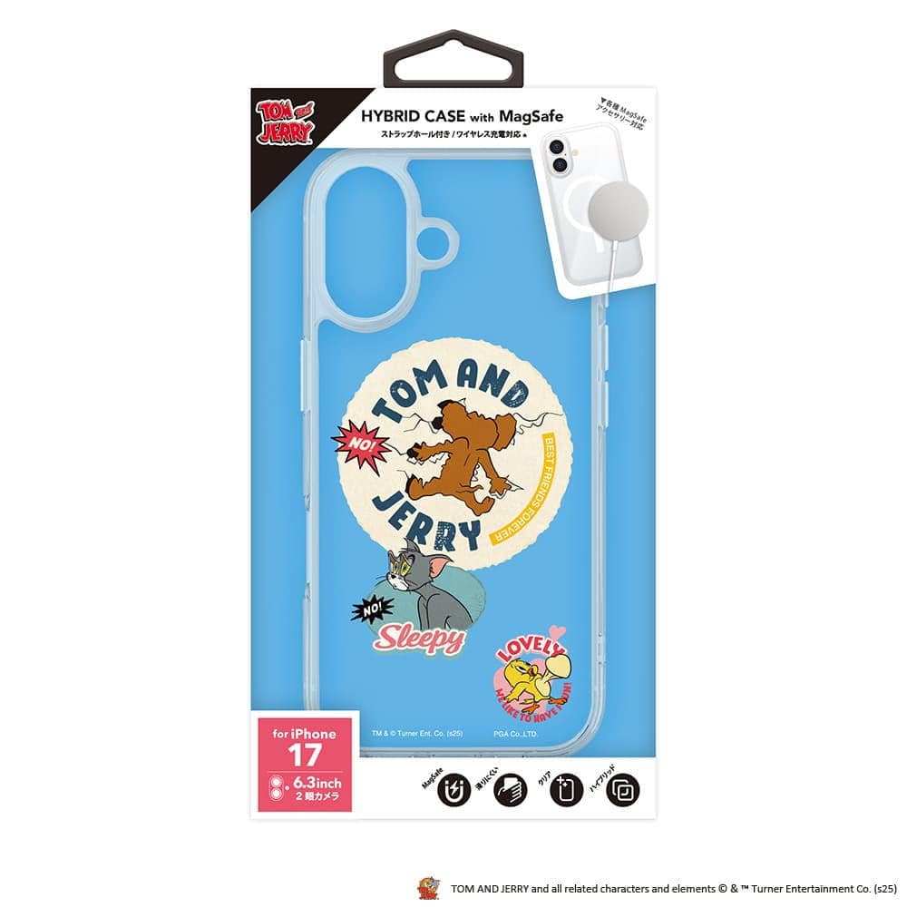 「PG-W25AMH02TAJ」は、「トムとジェリー」デザインの各種MagSafeアクセサリーに対応したiPhone 17用 ハイブリッドケースです。 MagSafeアクセサリーをピタッと簡単装着。 背面は衝撃に強いポリカーボネイト・側面は手に馴染みやすいTPUを組み合わせたハイブリッド設計で端末本体をしっかり保護します。 お手持ちのストラップを付けて落下を防止できるストラップホール付き。