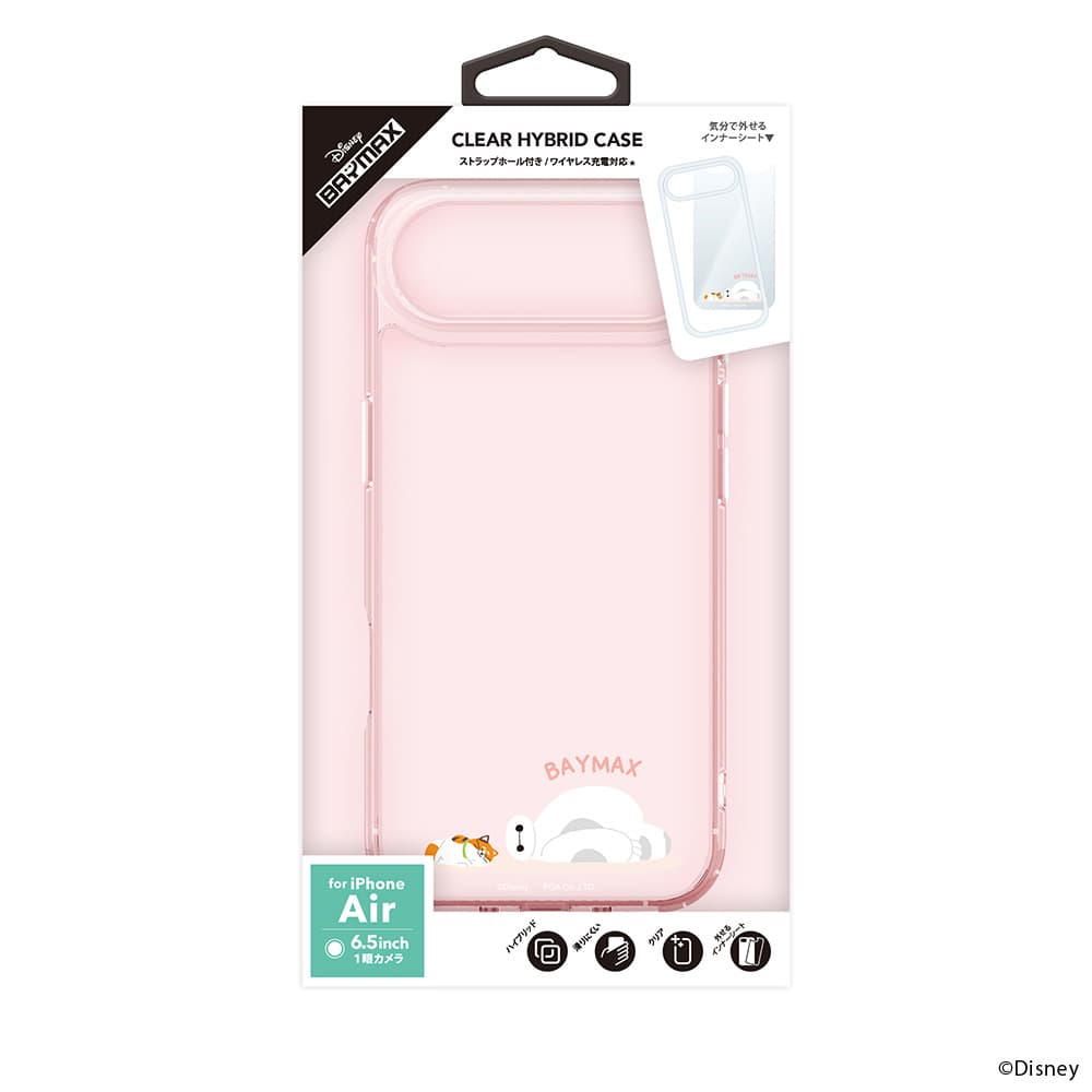 「PG-D25CPT02BAY」は、ディズニーキャラクターデザインの着せ替えシートがセットになったiPhone Air用 ハイブリッドケースです。 iPhone本体の色を活かす透明タイプの着せ替えシートは気分に合わせて取り外しが可能です。 耐久性のあるポリカーボネイトとしなやかなTPUを組み合わせたハイブリッド設計で端末本体をしっかり保護します。 ケースを付けたままワイヤレス充電が可能です。 お手持ちのストラップを付けて落下を防止できるストラップホール付き。